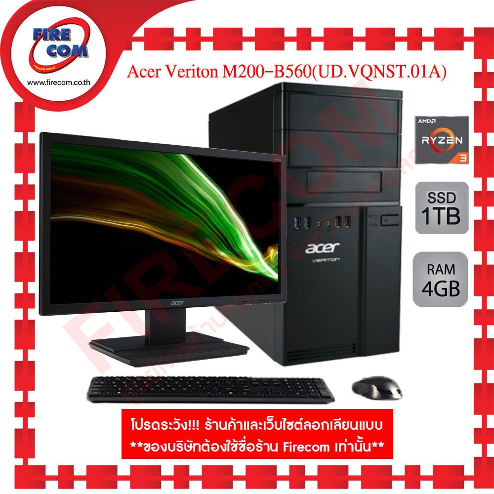 คอมพิวเตอร์ตั้งโต๊ะ Com Brand Acer Veriton M200-B560(UD.VQNST.01A) พร้อมจอAcer 19.5 ลงโปรแกรมพร้อมใช้งาน สามารถออกใบกำกับภาษีได้