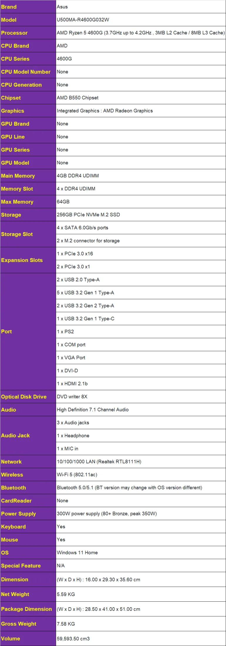 คอมพิวเตอร์ตั้งโต๊ะ Com Brand Asus U500MA-R4600G032W ลงโปรแกรมพร้อมใช้งาน สามารถออกใบกำกับภาษีได้
