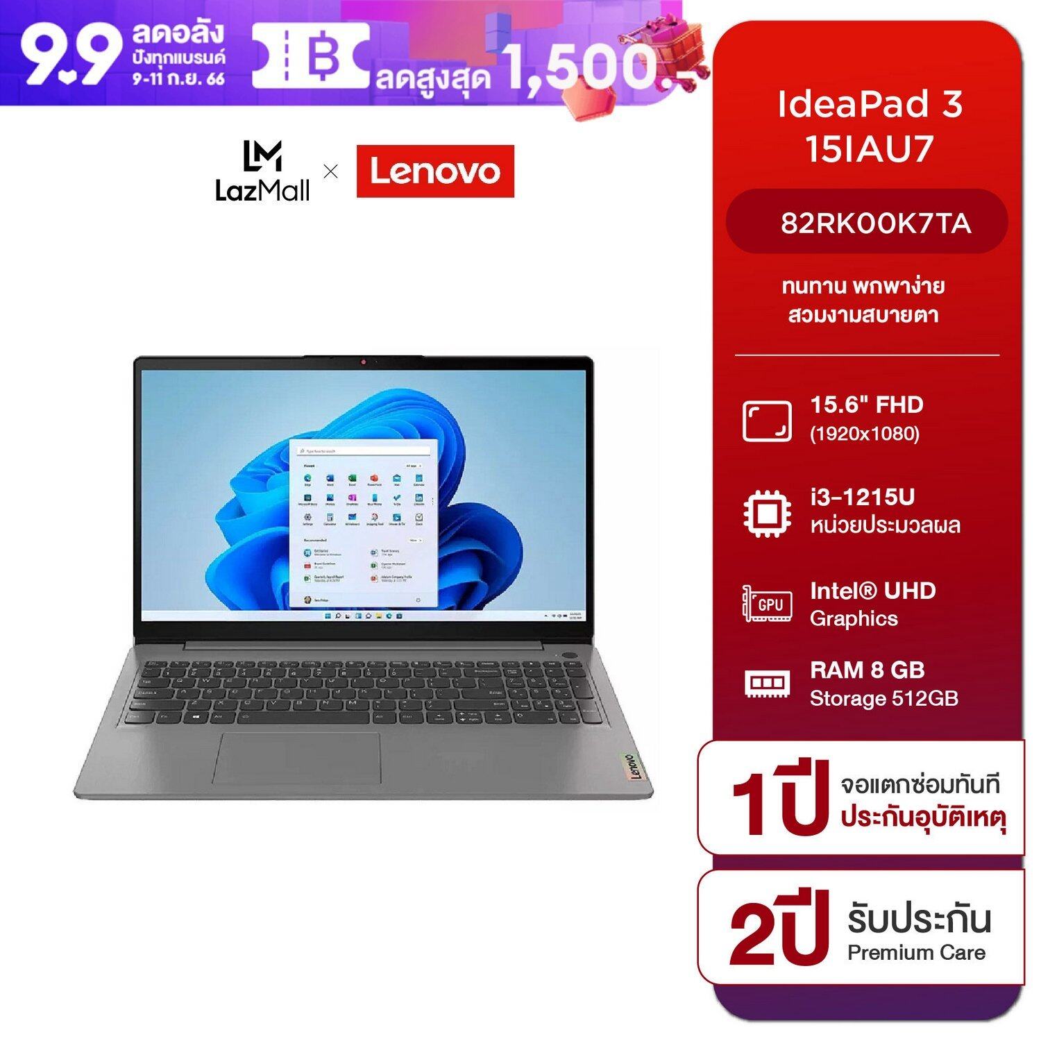 [ผ่อน 0% 10 เดือน] Notebook Lenovo IdeaPad 3 15IAU7-82RK00K7TA [15.6″ FHD/ i3-1215U / RAM 8 GB / SSD 512 GB / Win11Home / ประกัน 2 ปี Premium Care + 1 ปีอุบัติเหตุ] โน้ตบุ๊ค