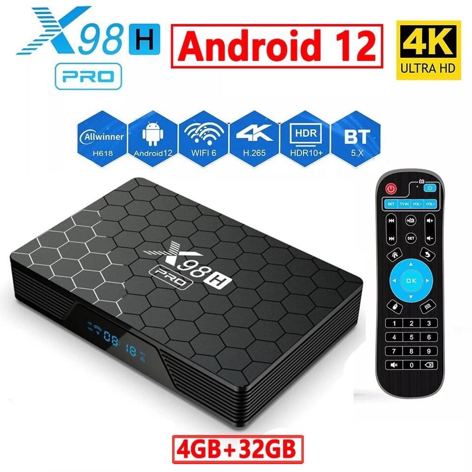 X98H PRO สมาร์ททีวีกล่อง Android 12 ALLWINNER H618 4G 32G TVBOX 2.4/5G dual Wifi6 1000M LAN BT5.0 H.265 4K กล่องสมาร์ททีวี Set TOP BOX
