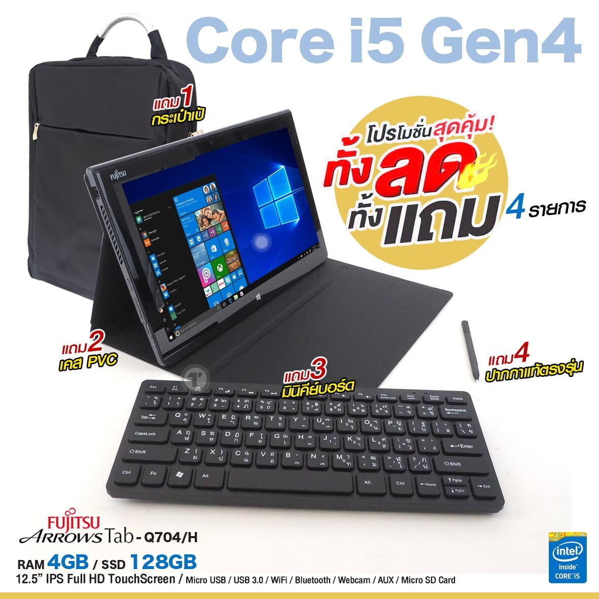 โน๊ตบุ๊ค/แท็บเล็ต 2 in 1 Fujitsu ArrowsTab Q704 Core i5 GEN 4 RAM 4GB SSD 128GB แถมฟรี 4 อย่าง จอ 12.5 ” IPS Full-HD ปากกาในตัว windows tablet Used laptop Refurbished computer 2023 มีประกัน By Totalsolution