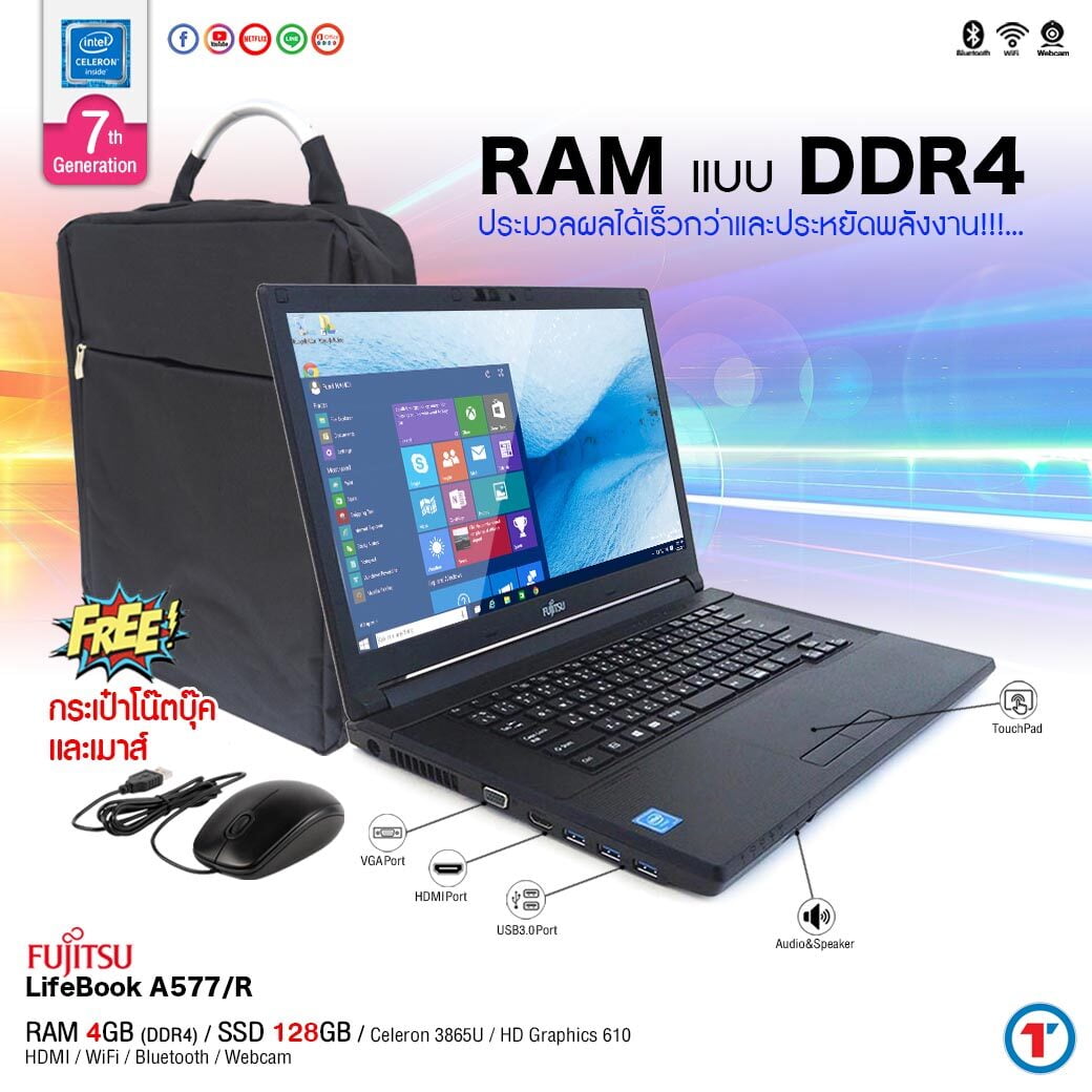 โน๊ตบุ๊ค Fujitsu LifeBook A577/R Celeron Gen7 / RAM 4-8GB (DDR4) SSD หน้าจอ 15.6 นิ้ว Wifi-Bluetooth ในตัว HD Webcam Refurbished laptop used notebook คอมพิวเตอร์ 2023 มีประกัน By Totalsolution