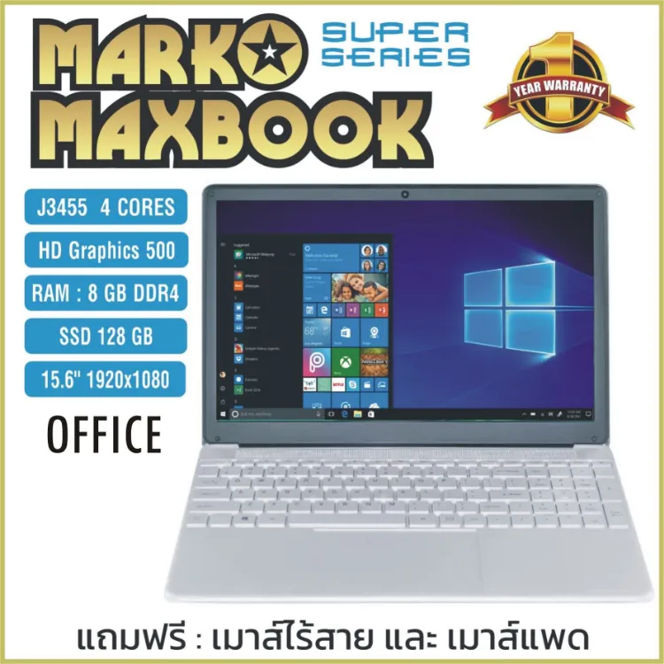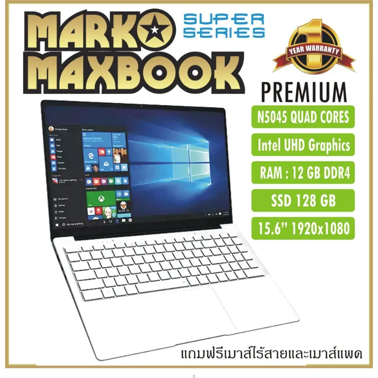 - รุ่น Pro Series+CPU : Intel N5105 Quad Cores+ Intel UHD Graphics+ Speed 2.90 GHz+ Memory : DDR4 16GB+ SSD 256 GB+ 15.6 inch ,Resolution:1920*1080+ Weight:1.8kg+ 2.4G AND 5G WIFI2x USB PORT , DC PORT, MINI HDMI PORT, RJ45 Port, earphone port, micro sd card slot รุ่น Super Series Premium+ CPU : Intel N5045 QUAD CORES+ Intel UHD Graphics+ Speed:2.4-2.8GHz+ Memory:DDR4 12GB+ SSD:128 GB+ 15.6 inch ,Resolution:1920*1080+ Weight:1.8kg+ 2.4G AND 5G WIFI 2x USB PORT , DC PORT, MINI HDMI PORT, RJ45 Port, earphone port, micro sd card slot รุ่น Super Series Office+ CPU : Intel J3455 4Cores4Threads+ Graphics 500+ Speed:1.5- 2.3GHz+ Memory:DDR4 8GB+ SSD:128 GB+ 15.6 inch ,Resolution:1920*1080+ Weight:1.8kg+ 2.4G AND 5G WIFI 2x USB PORT , DC PORT, MINI HDMI PORT, RJ45 Port, earphone port, micro sd card slotทั้ง 2 รุ่น+ มีประกัน 1 ปี เครื่องมีปัญหาเปลี่ยนใหม่ทันที+ แถมเมาส์ไร้สาย และเมาส์แพด+ กรุณาถ่ายวีดิโอ ขณะแกะเครื่องออกจากล่อง เพื่อประโยชน์ในการเคลมสินค้า กรณีมีปัญหา