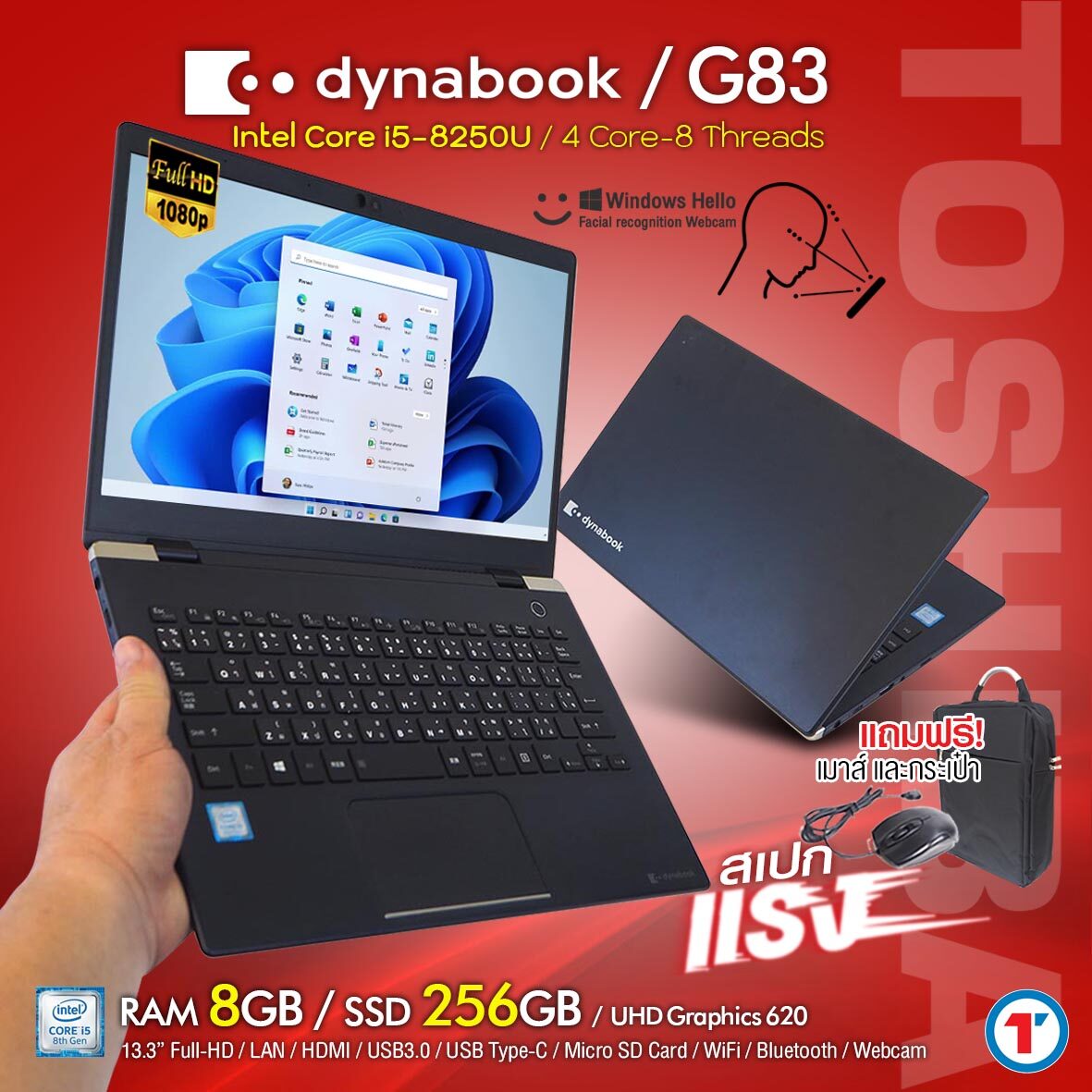 โน๊ตบุ๊ค Toshiba Dynabook G83/M Core i5 GEN 8 -8250U RAM 8 GB SSD 256 GB มีกล้อง wifi, BT, HDMI Refurbished laptop used notebook computer คอมมือสอง 2023 สภาพดี มีประกัน By Totalsolution