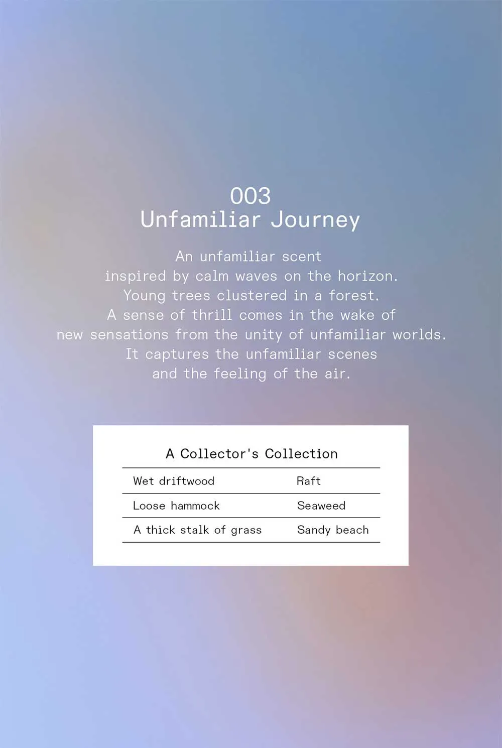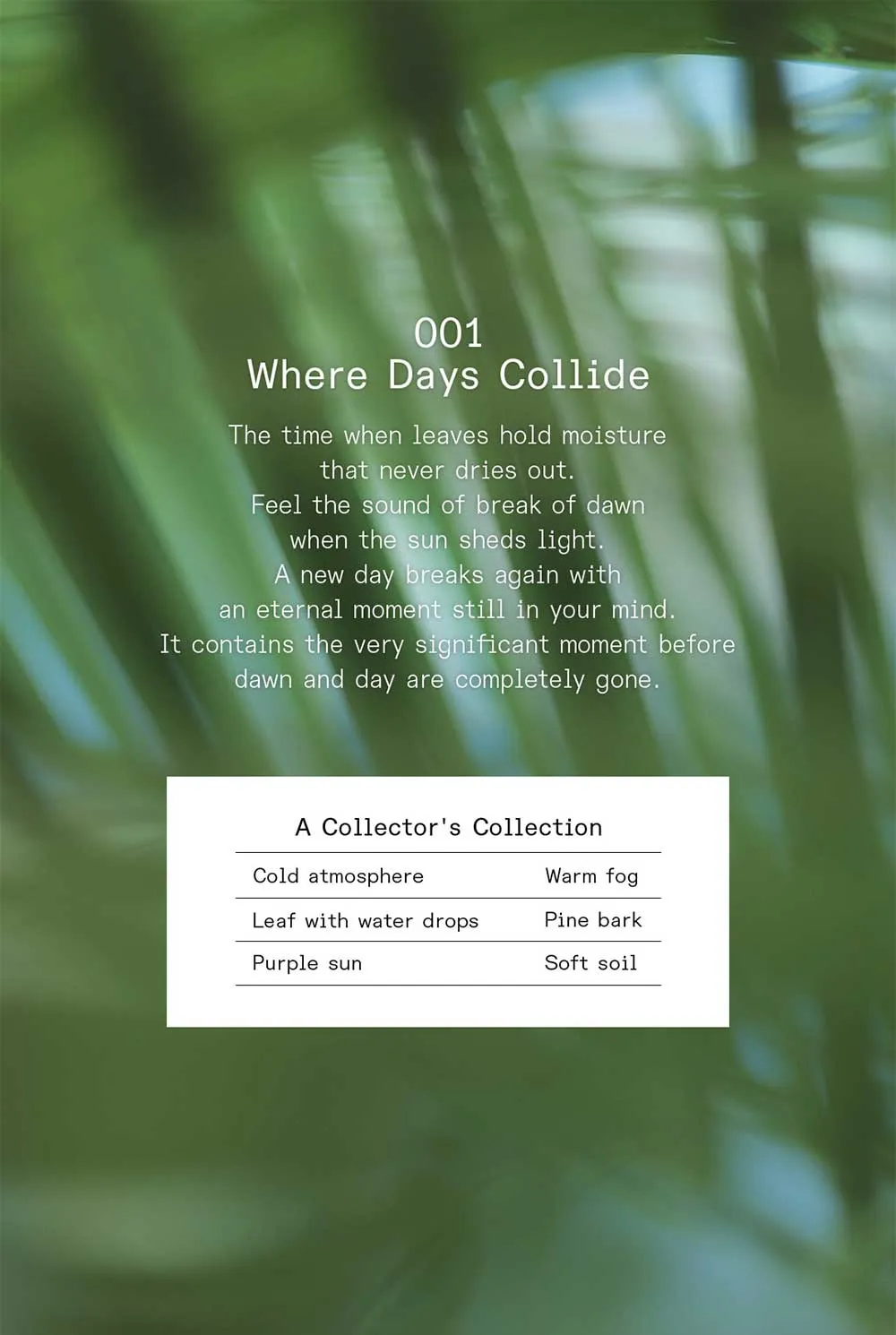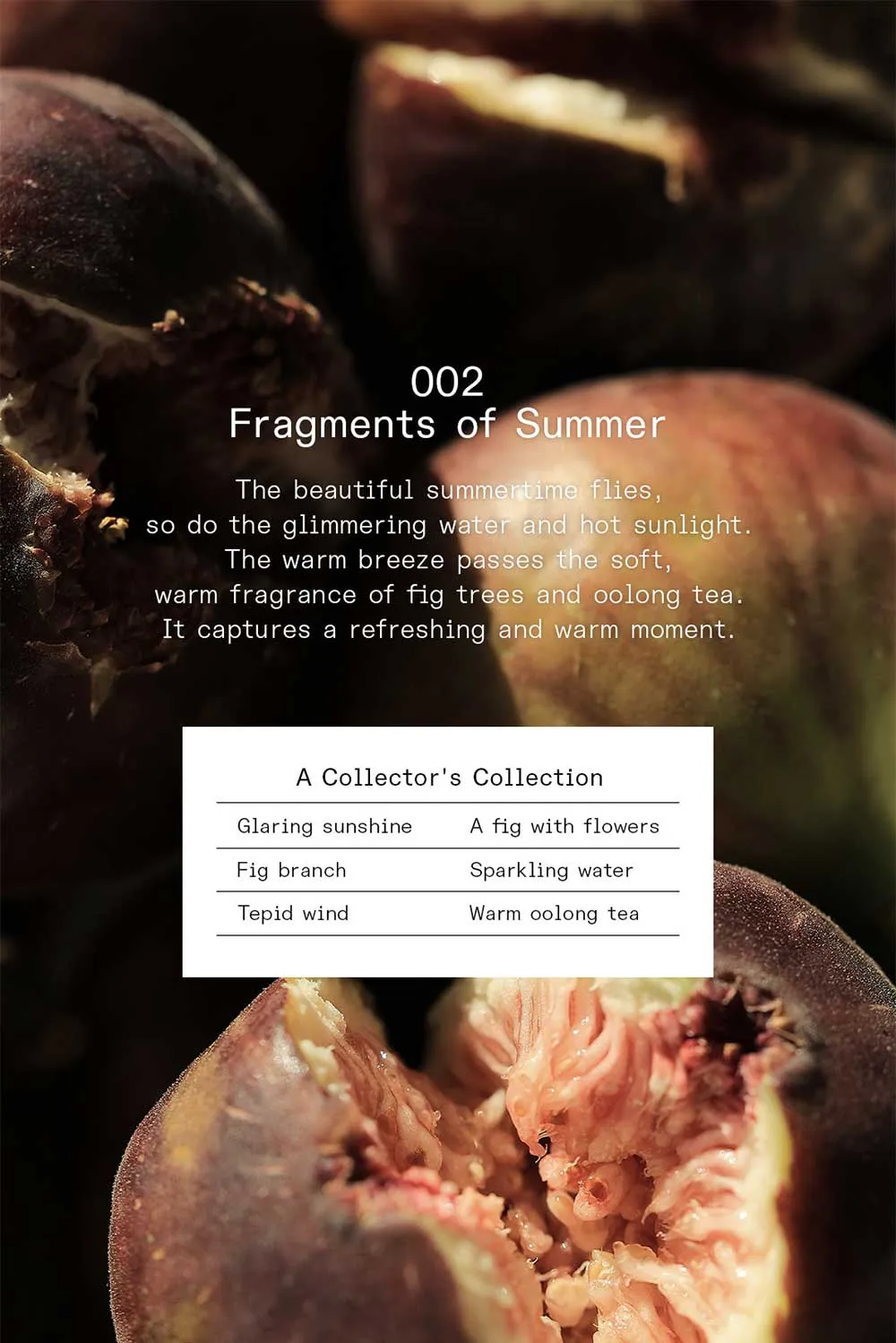 A warm, Soft scent of fig trees and oolong tea reminiscent of the ravishing summer.