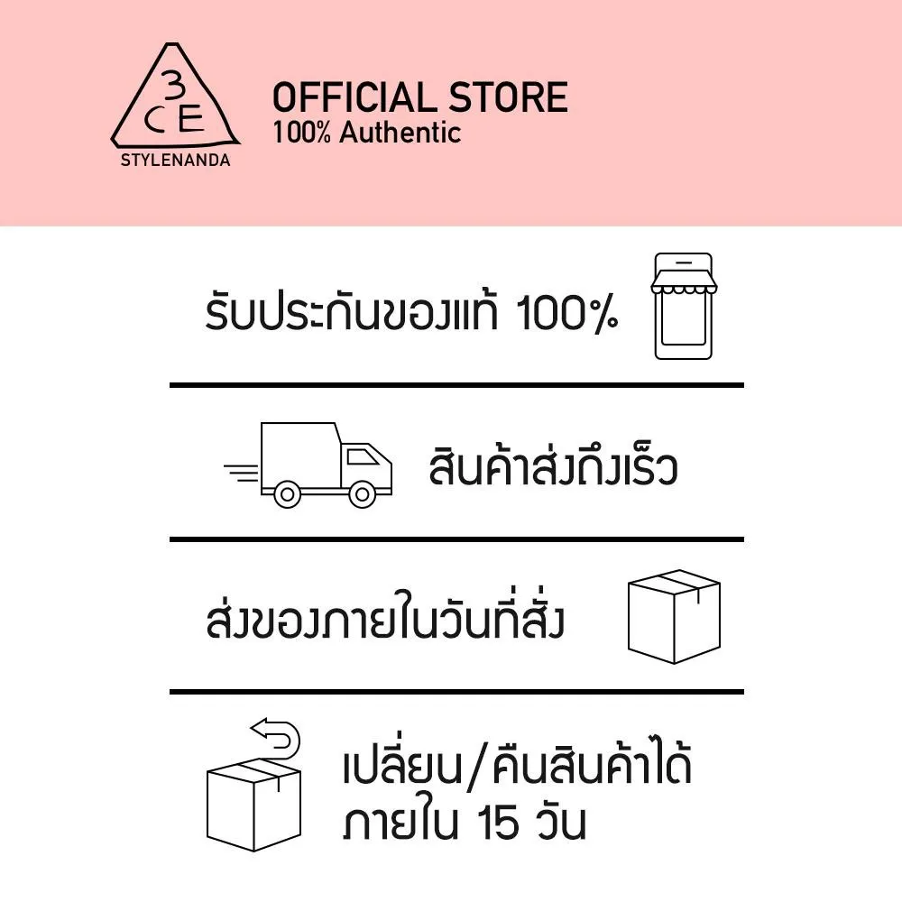 3CE เครื่องสำอางเกรดพรีเมี่ยมสัญชาติเกาหลีขายดีอันดับ 1 มาพร้มกับแพ็คเกจที่ดูน่ารักและมีความทันสมัยเหมาะสำหรับสาวๆทุกคนเป็นอย่างมาก รวมถึงยังสามารถช่วยให้การแต่งหน้าเป็นเรื่องสนุกที่คุณสามารถมิกซ์แอนด์แมทได้เอง ไม่ว่าจะเป็นสไตล์ไหนๆ 3CE ก็สามารถช่วยเติมเต็มความสวยงามให้กับการแต่งหน้าของเราได้อย่างมีประสิทธิภาพ