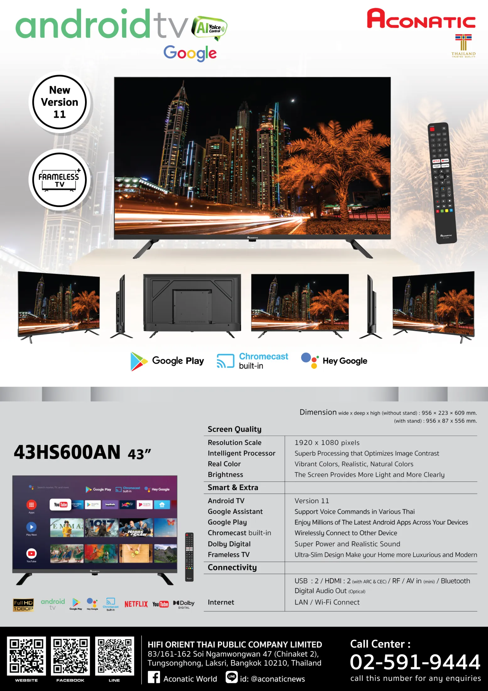 รายละเอียดสินค้า [2022 New Android TV] Aconatic LED Android TV FHD แอลอีดี แอนดรอย ทีวี ขนาด 43 นิ้ว รุ่น 43HS600AN (รับประกัน 3 ปี)