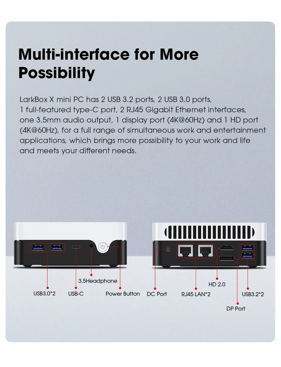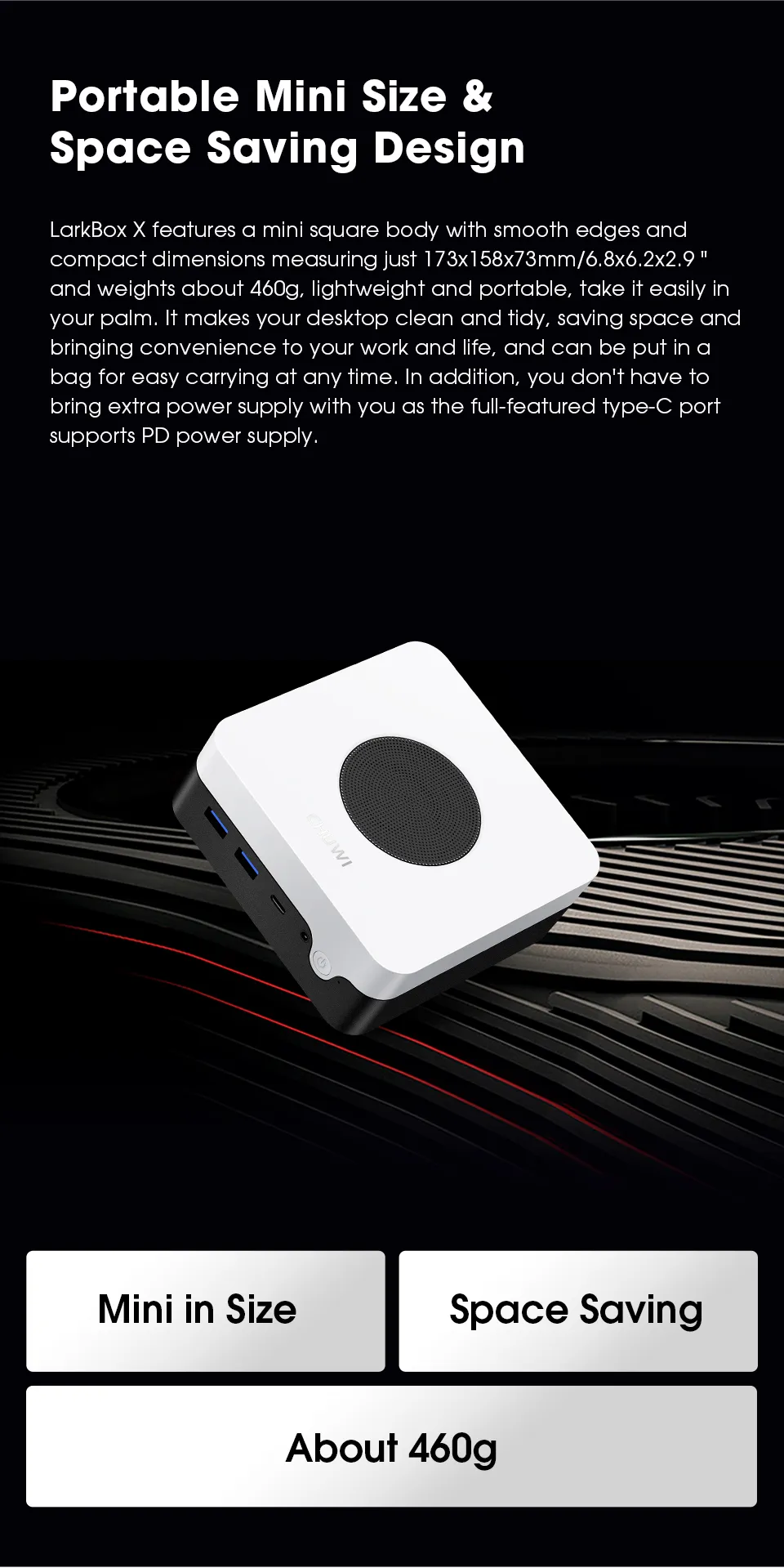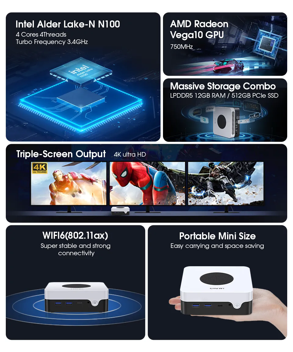 CHUWI LarkBox X Windows10คอมพิวเตอร์ขนาดเล็กคอมพิวเตอร์ขนาดเล็กทั้งหมดในหนึ่งคอมพิวเตอร์เดสก์ท็อปพีซีขนาดเล็กพิเศษกับ Intel Alder Lake-N N100โปรเซสเซอร์12GB LPDDR4 512GB SSD WIFI6ขยายได้2TB,การออกแบบพลังงานความร้อนแบบบลูทูธ/WiFi/BT5.2/วิดีโอ4K/VESA 15WTD