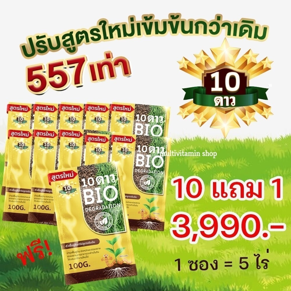 F1042 10 DAO BIO DEGRADATION 10ดาวไบโอ 10ดาวจุลินทรีย์ ไบโอจุลินทรีย์ หัวเชื้อจุลินทรีย์ สูตรเข้มข้น สายพันธุ์ใหม่ เปลี่ยนขยะเป็นปุ๋ย 10 แถม 1 ซอง