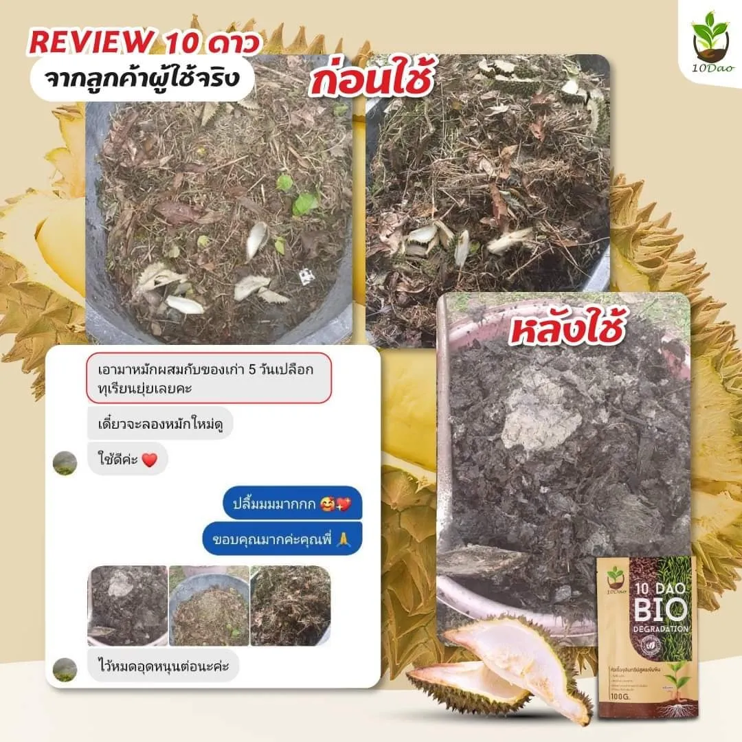 10 DAO BIO DEGRADATION 10ดาวไบโอ 10ดาวจุลินทรีย์ ไบโอจุลินทรีย์ หัวเชื้อจุลินทรีย์ สูตรเข้มข้น สายพันธุ์ใหม่ เปลี่ยนขยะเป็นปุ๋ย 10 แถม 1 ซอง