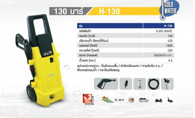 ปั้มฉีดน้ำแรงดันสูง LAVORรุ่น H – 130V2 130บาร์ แถมเสื้อ 1 ตัว พร้อมใบรัประกัน 1 ปี