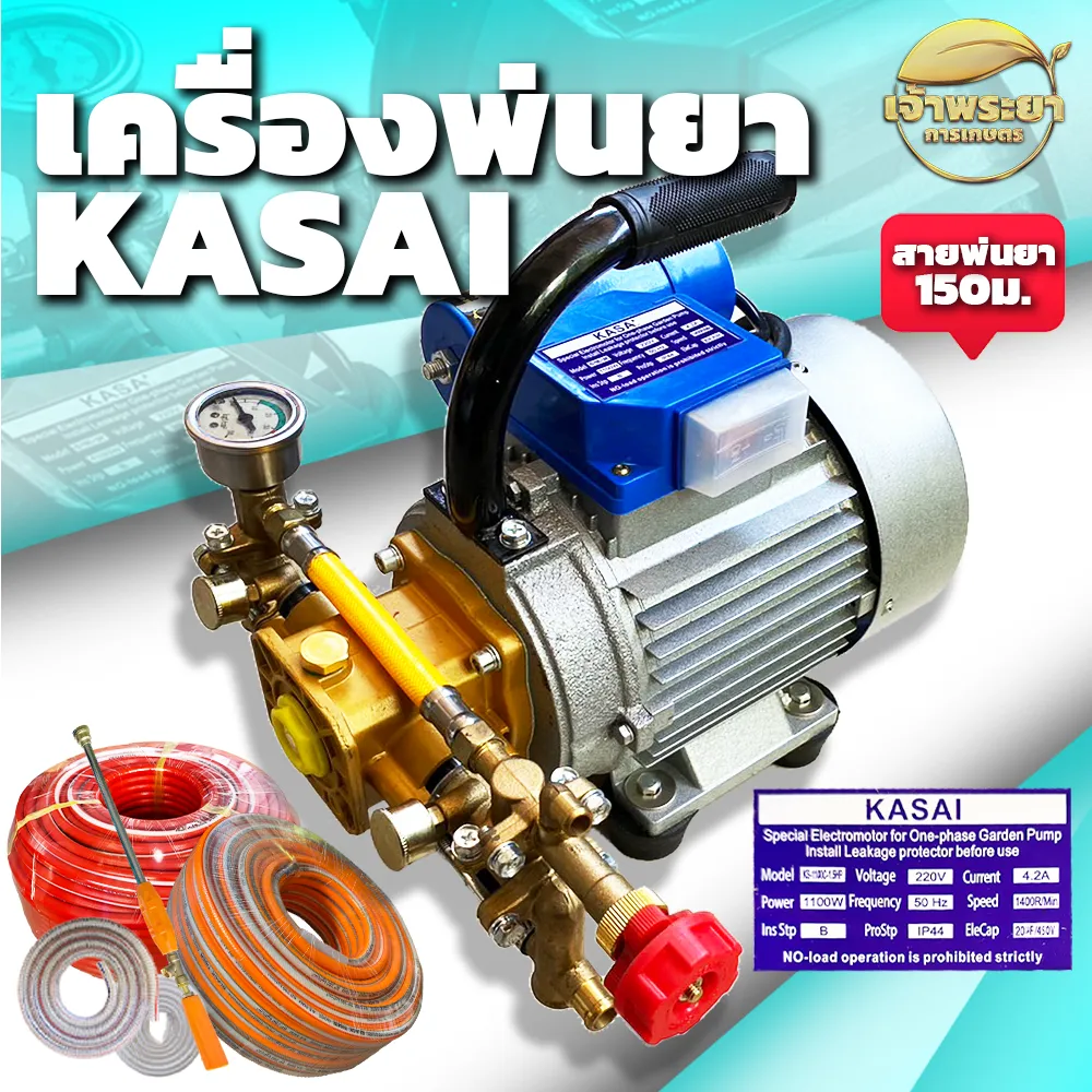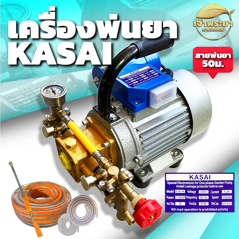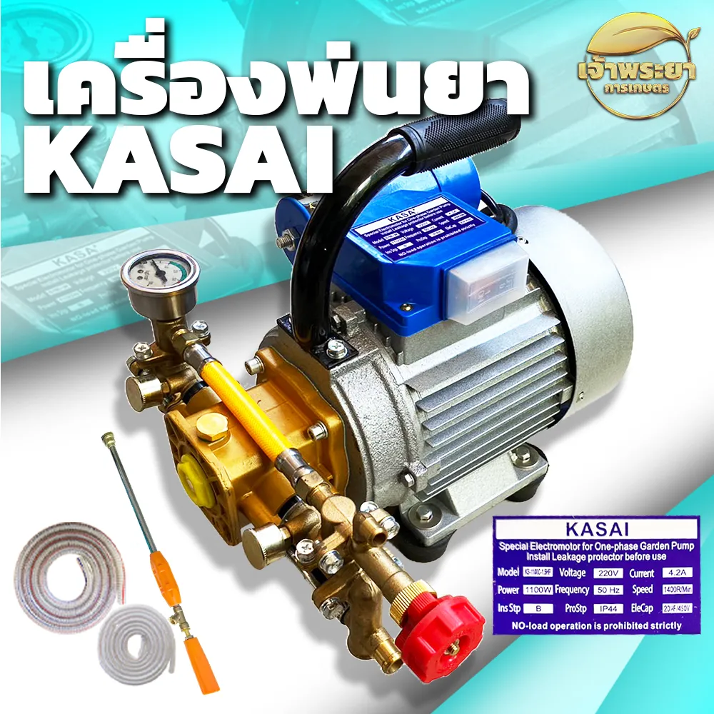 เครื่องพ่นยาไฟฟ้า Kasai ทองแดงแท้ แรงดันสูง มอเตอร์ขนาด 1.5 แรงม้า พ่วงกับปั้ม 4 หุน พ่นสูง 20 เมตร พ่นไกล 200-300 เมตร มาตราฐานญี่ปุ่น