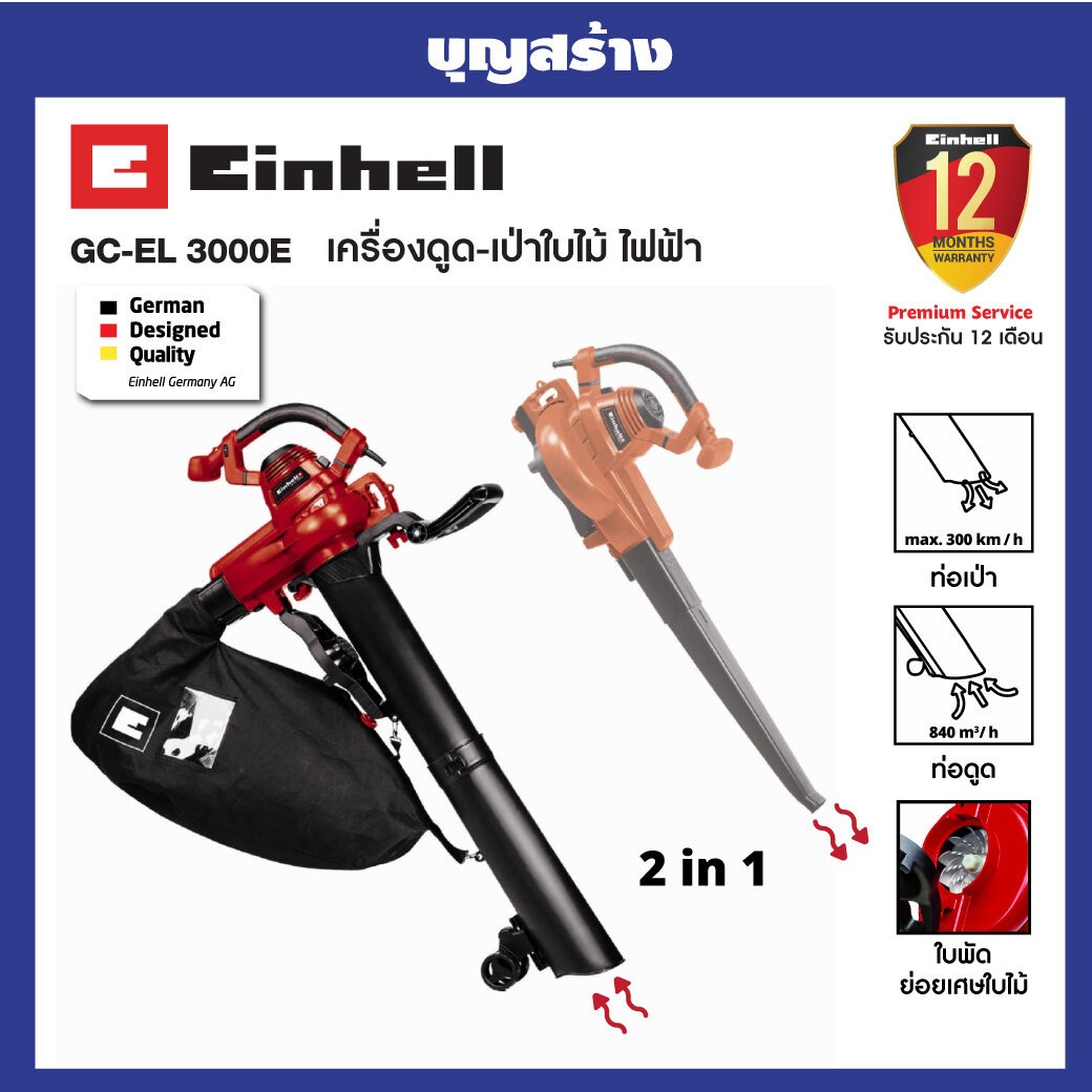 เครื่องเป่าใบไม้ เครื่องดูดใบไม้ Electric Leaf Vacuum Einhell GC-EL 3000 E รับประกัน 1 ปี