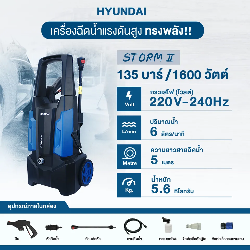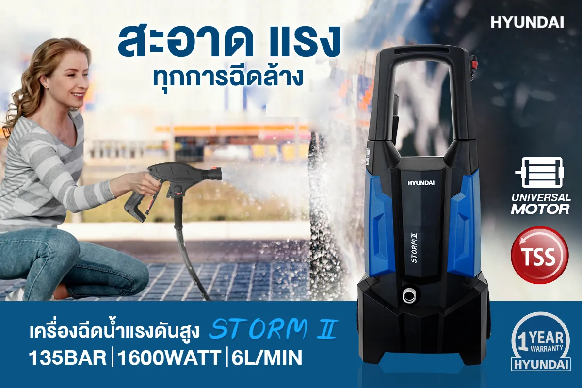 - เครื่องฉีดน้ำ HYUNDAI รุ่น STORM จะช่วยให้การทำความสะอาดของลูกค้าสะดวก รวดเร็ว และง่ายขึ้น
