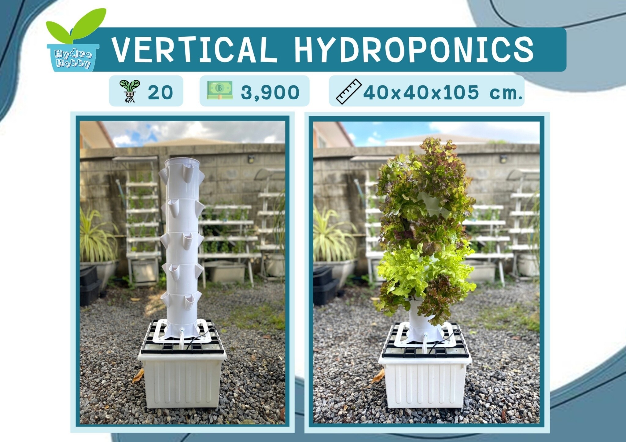 ชุดปลูกผักไฮโดรโปนิกส์แนวตั้ง น้องบอง 5 ชั้น VERTICAL (ปลูกได้ 20 ต้น)