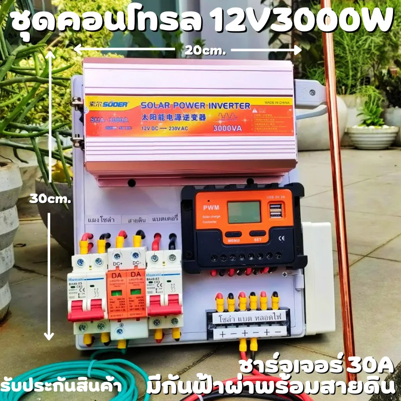 ชุดพลังงานแสงอาทิตย์ ชุดนอนนา ชุดคอนโทรล 12V 3000W โซล่าชาร์จเจอร์ 30A มีกันฟ้าผ่าพร้อมสายดิน แถมฟรีแท่งกราวด์ รับประกันสินค้า สินค้าพร้อมส่ง
