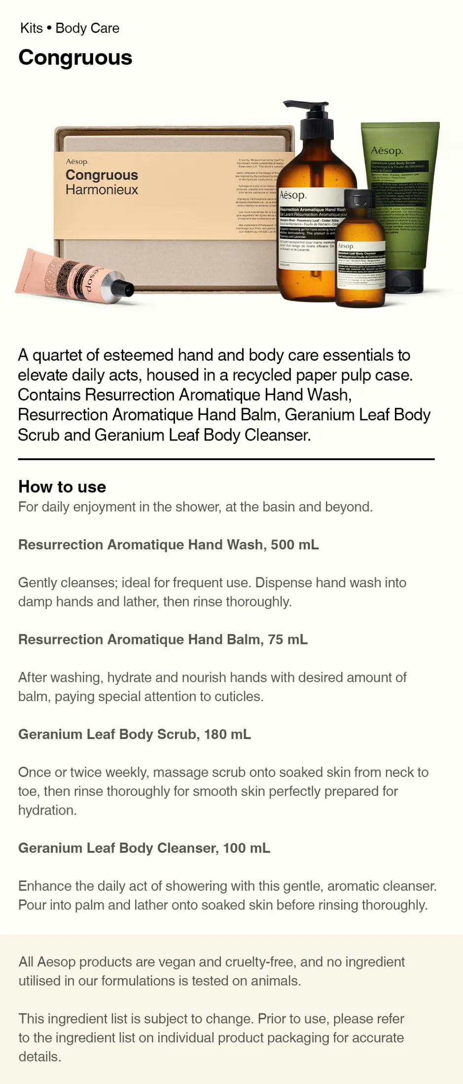 F1141 [Kits] Aesop Congruous ชุดผลิตภัณฑ์ทำความสะอาด และบำรุงผิว เซ็ตของขวัญ ชุดของขวัญ ผลิตภัณฑ์บำรุงผิว ผลิตภัณฑ์ทำความสะอาด ดูแลผิว เซ็ตเดินทาง ผลิตภัณฑ์ทำความสะอาดมือ ทำความสะอาดมือ