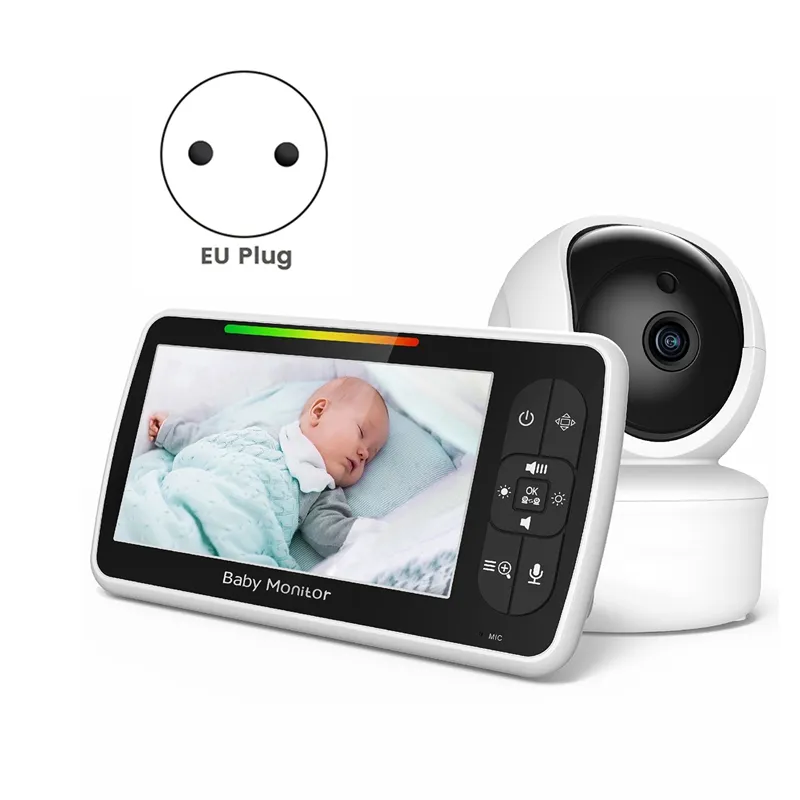 - 5 Inch Lullabies Video Baby Monitor Security Camera Night Baby Monitor with Camera and Audio Remote Pan-Tilt-Zoom 2-Way Audio Temperature Sensor EU Plug