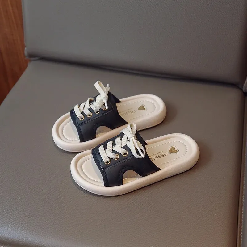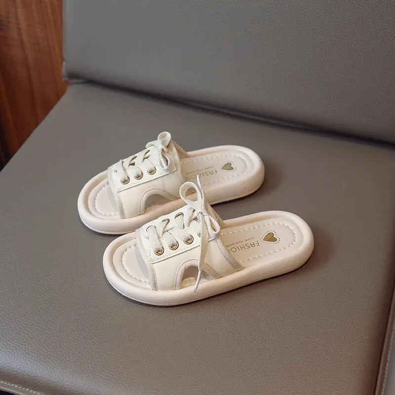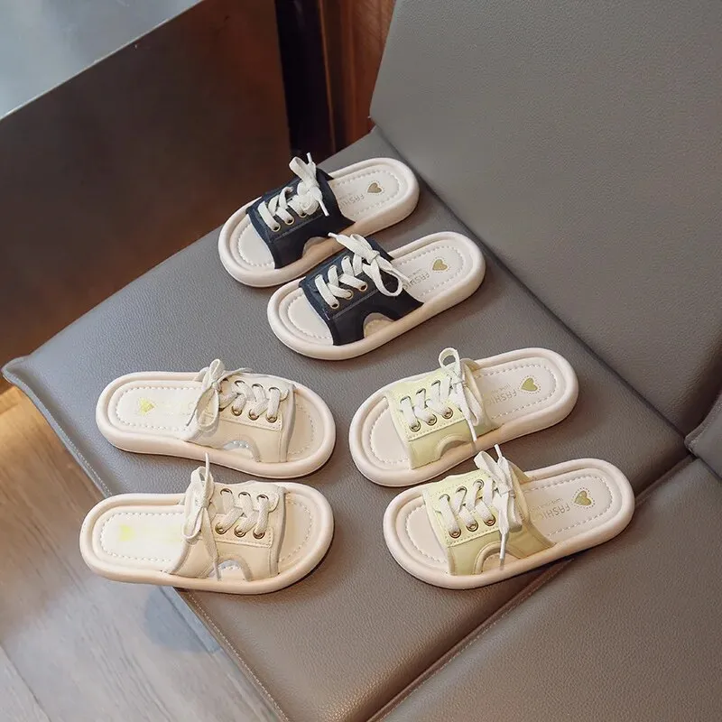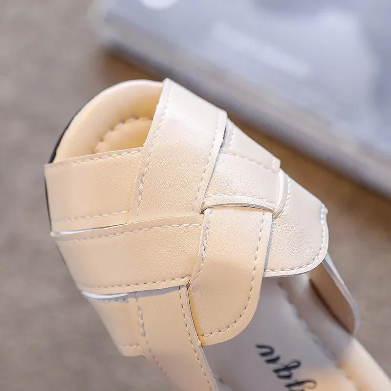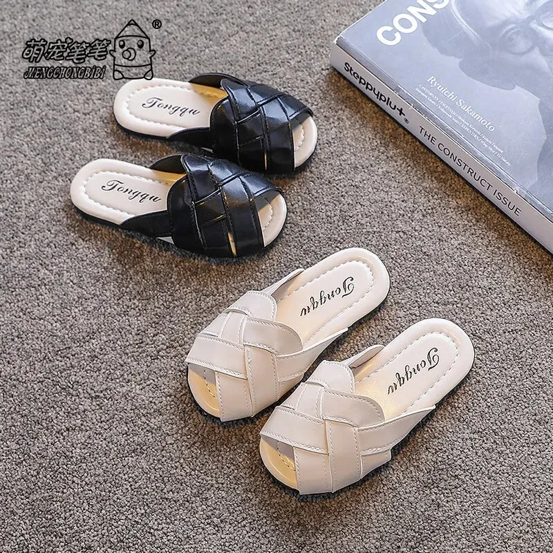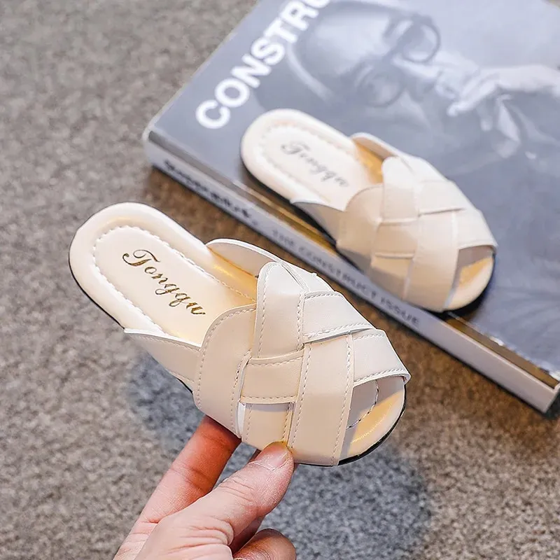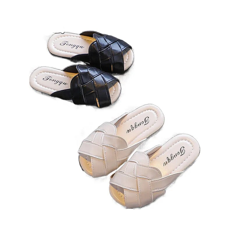Guangxiyulin เปียของเด็กรองเท้าแตะหนังฤดูร้อนใหม่นักเรียนสาวแฟชั่นปิดพื้นรองเท้านิ่มสำหรับเด็กสวมด้านนอกรองเท้าแตะแบบหนีบ