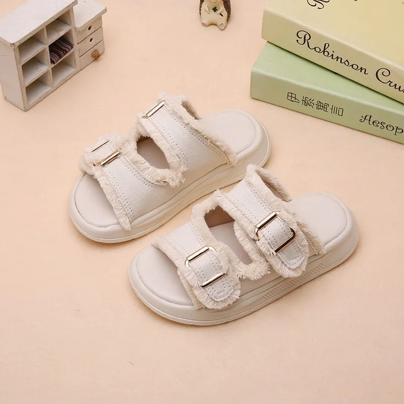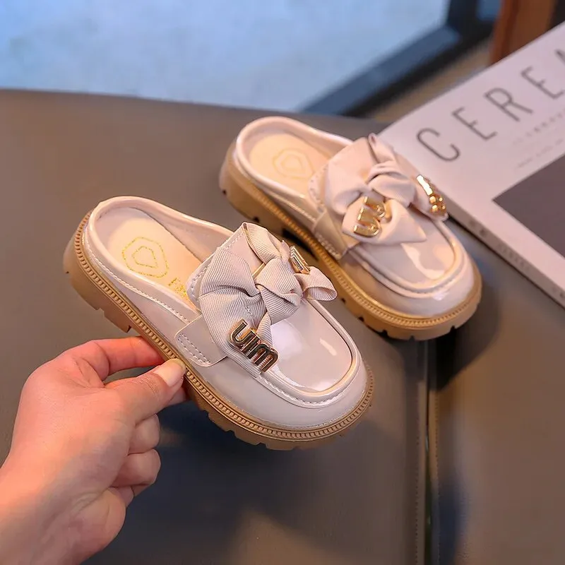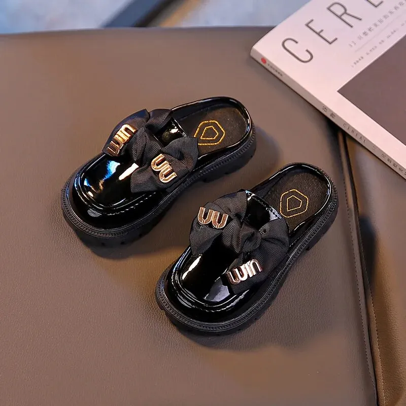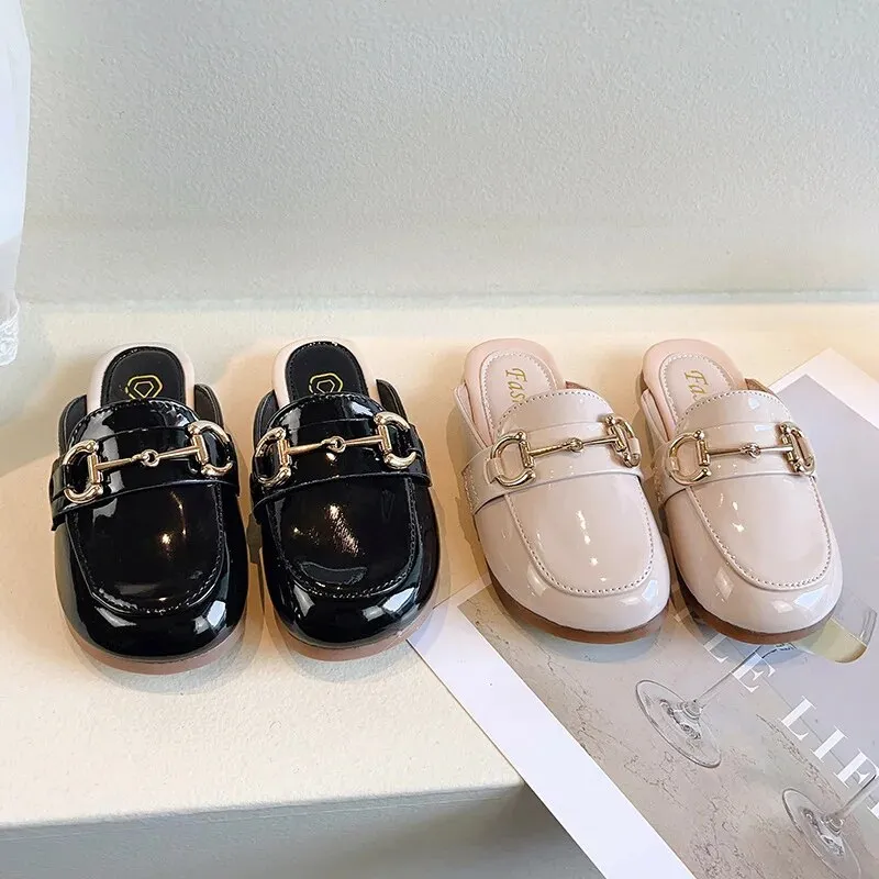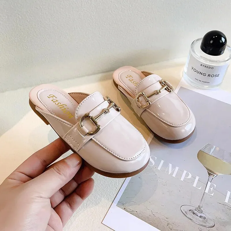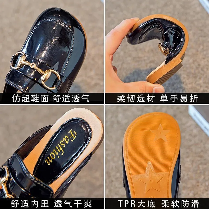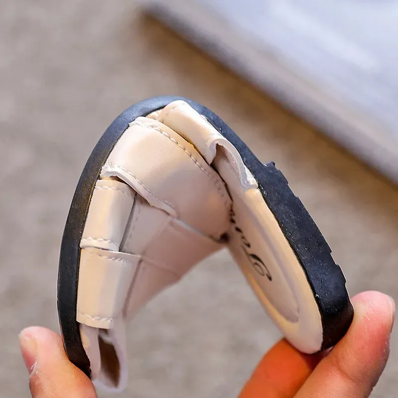 Guangxiyulin เปียของเด็กรองเท้าแตะหนังฤดูร้อนใหม่นักเรียนสาวแฟชั่นปิดพื้นรองเท้านิ่มสำหรับเด็กสวมด้านนอกรองเท้าแตะแบบหนีบ