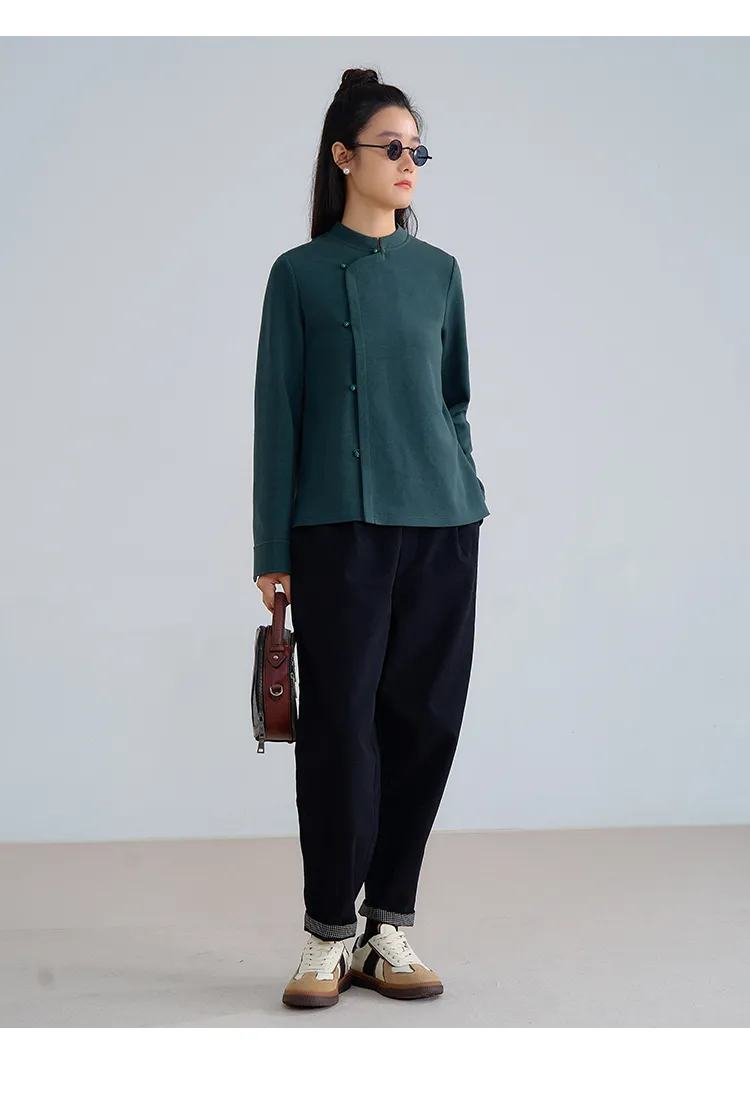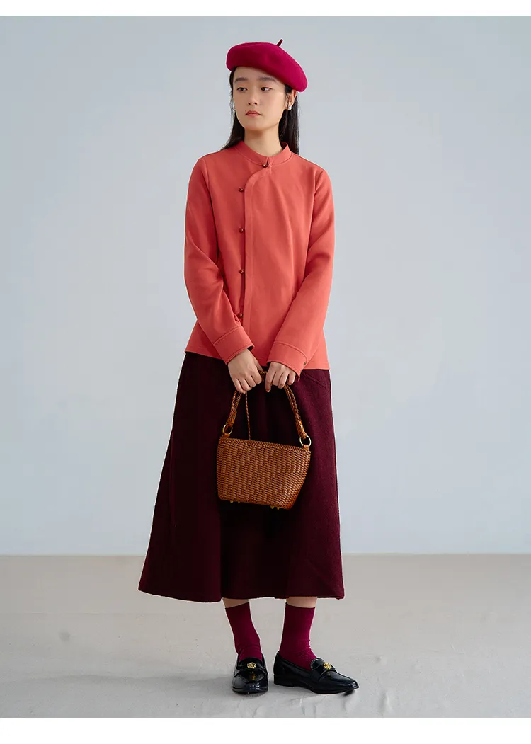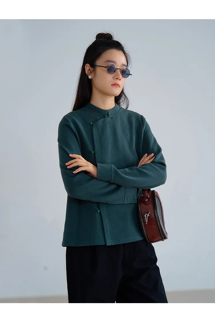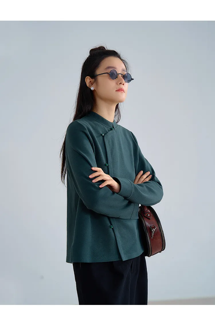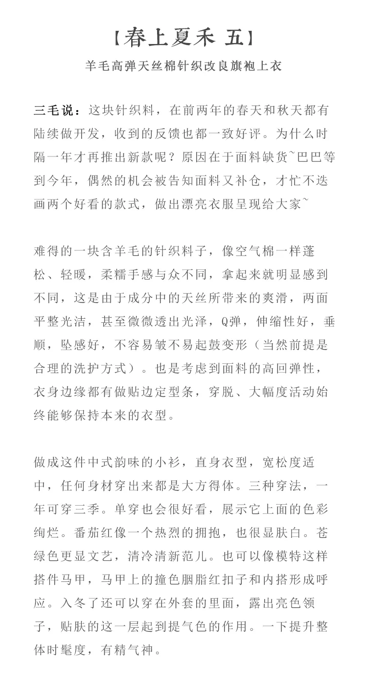 F1244 ชุดกี่เพ้าแบบปรับปรุงขนแกะยืดหยุ่นสูงทำจากผ้าฝ้ายถักนุ่มฟูฟู-ฤดูใบไม้ผลิและฤดูร้อน