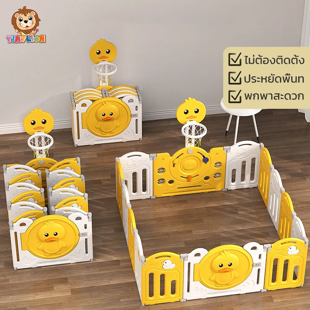 F1246 มีแผ่นรองคลานให้ด้วย Tinylion คอกกั้นเด็ก คอกกั้นเกาหลี เปลี่ยนขนาด พับเก็บได้ ขนาด6.5ฟุต 5.2ฟุต พร้อม เพลยิม 1 แผ่น+ลูกบอลทะเลหลายลูก+ลูกบาส 1 ลูก+ห้วงบาสเก็ตบอล 1 อัน