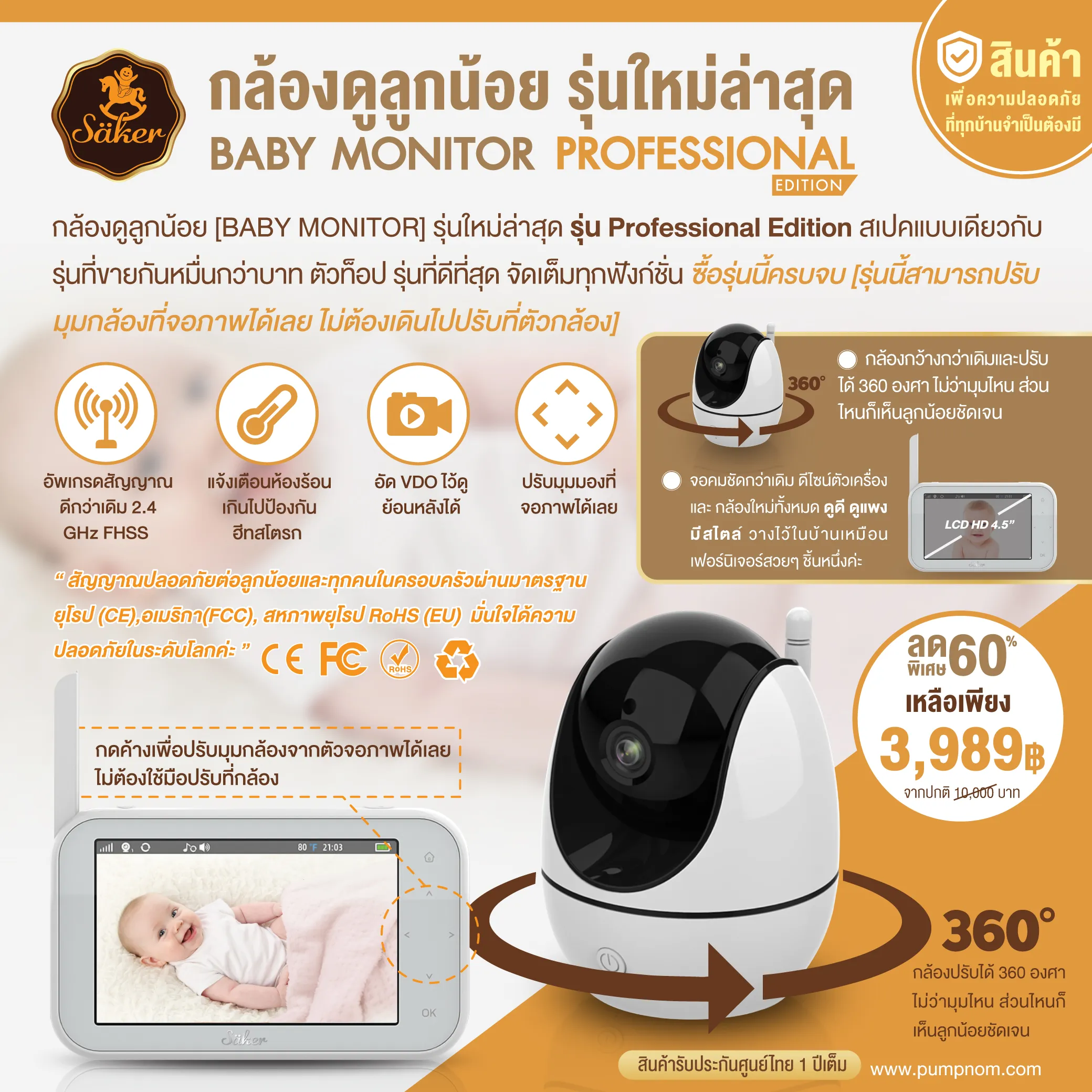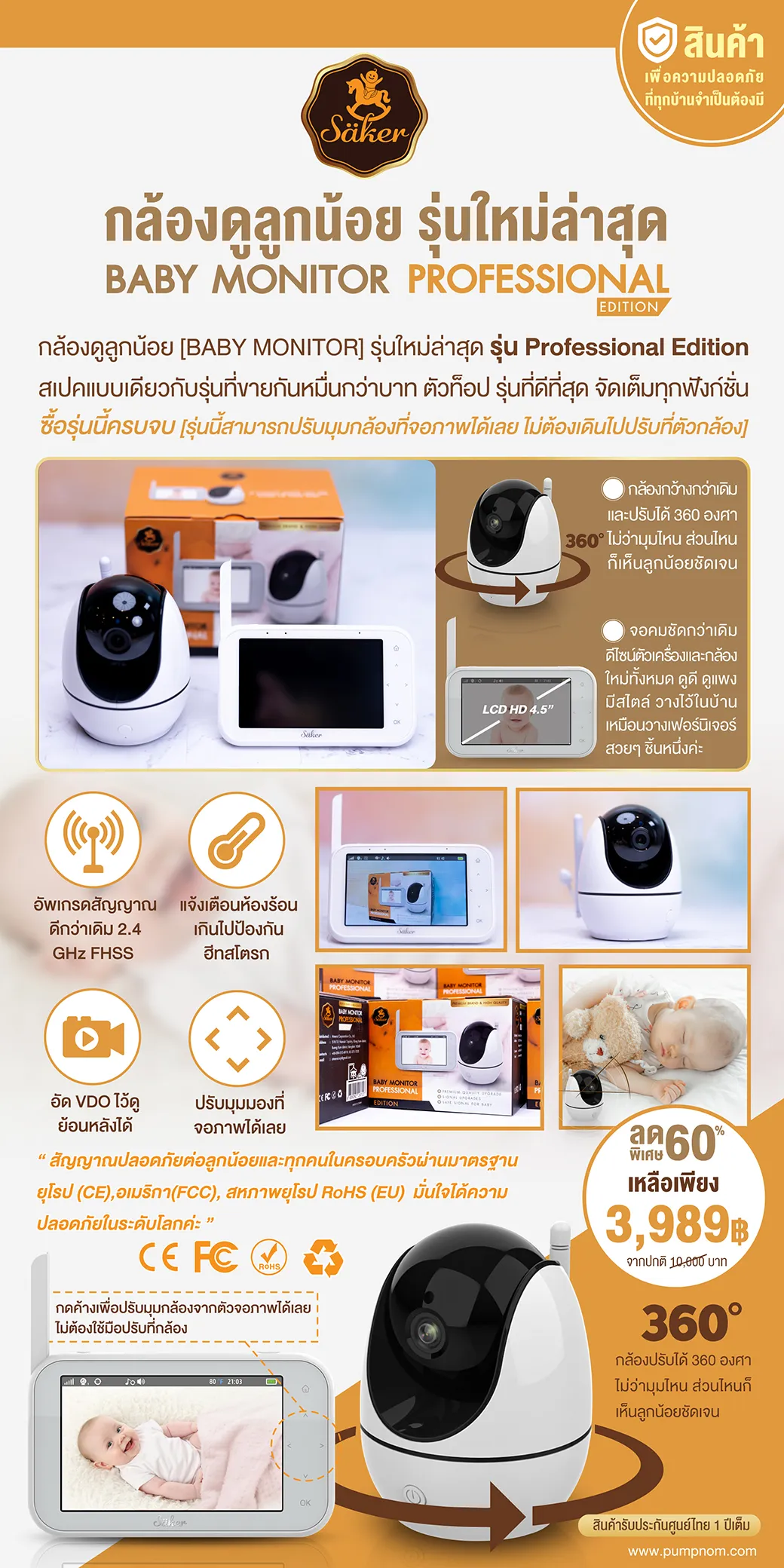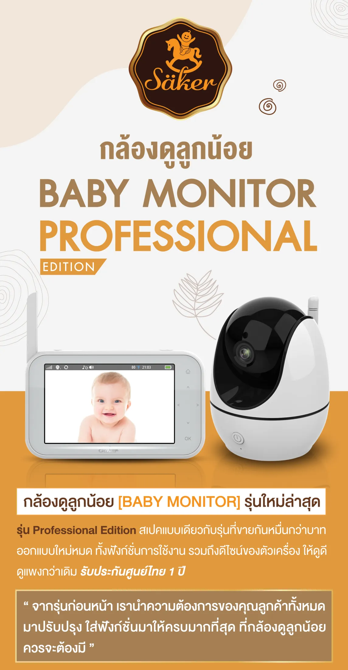 SAKER (เซเกอร์) กล้องดูลูกน้อย [BABY MONITOR] รุ่นใหม่ล่าสุด รุ่นโปรเฟสชั่นนอล อิดิชั่น Professional สเปคแบบเดียวกับรุ่นที่ขายกันหมื่นกว่าบาท