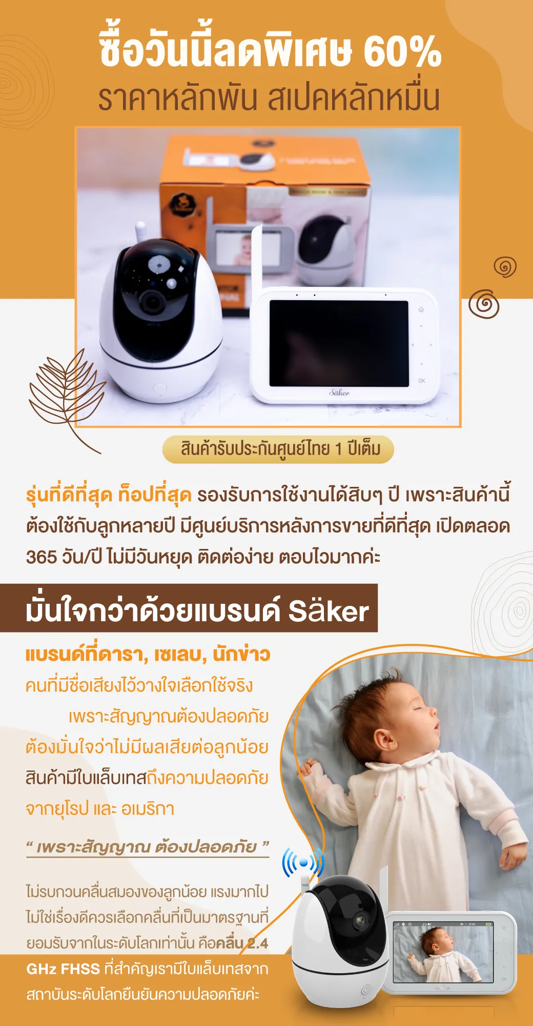F1248 ลด60% SAKER (เซเกอร์) กล้องดูลูกน้อย [BABY MONITOR] รุ่นใหม่ล่าสุด รุ่นโปรเฟสชั่นนอล อิดิชั่น Professional สเปคแบบเดียวกับรุ่นที่ขายกันหมื่นกว่าบาท