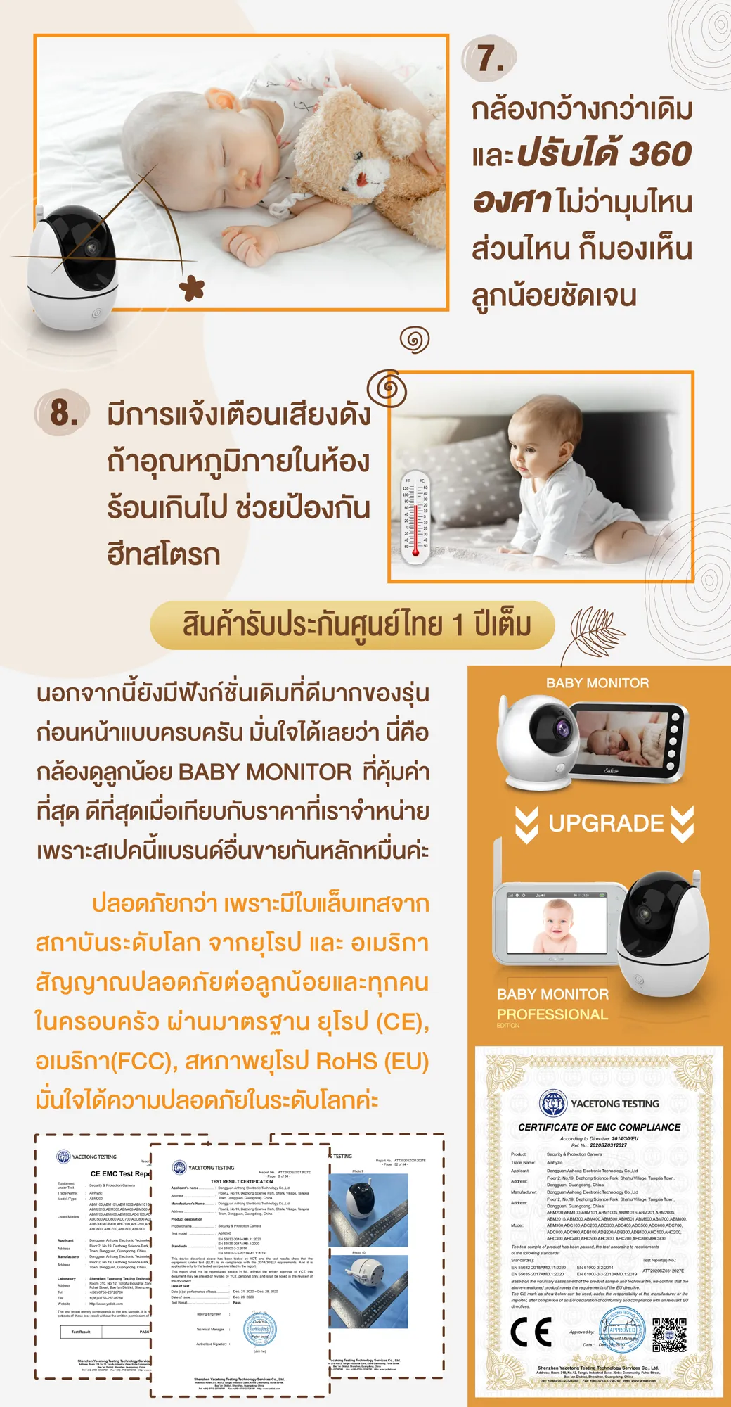 สัญญาณปลอดภัยต่อลูกน้อยและทุกคนในครอบครัว ผ่านมาตรฐาน ยุโรป (CE),อเมริกา(FCC), สหภาพยุโรป RoHS (EU) มั่นใจได้ความปลอดภัยในระดับโลกค่ะ