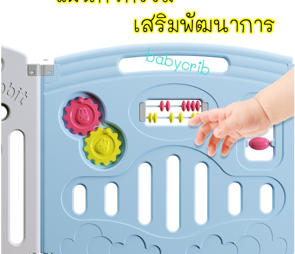 คอกกั้นเด็กพับได้ HappyRabbit แข็งแรงปีนไม่คว่ำ แผ่นหนักและใหญ่กว่ารุ่นทั่วไป มีประตูและแผ่นเสริมพัฒนาการ วัสดุHDPEกัดได้ปลอดภัย