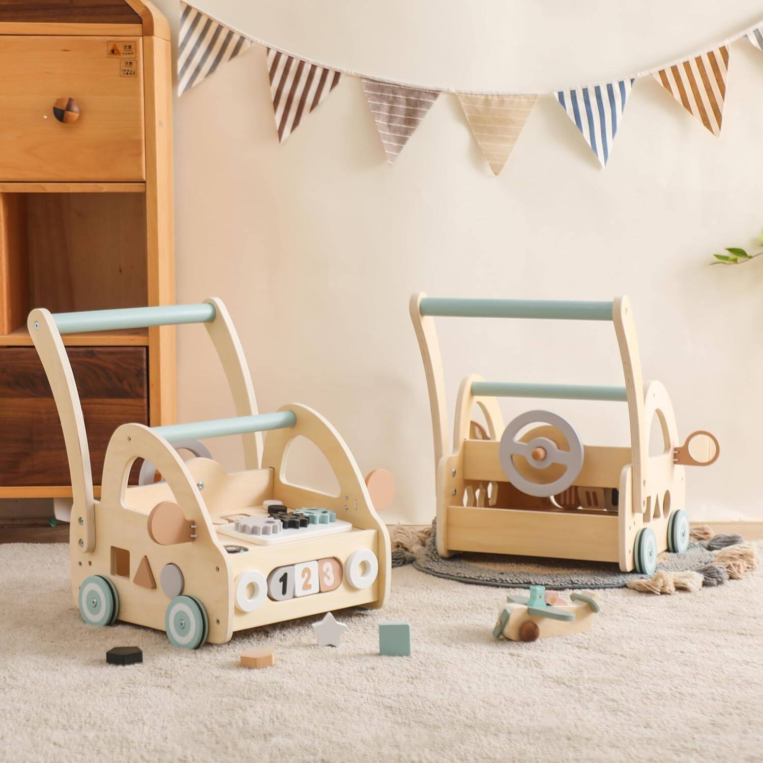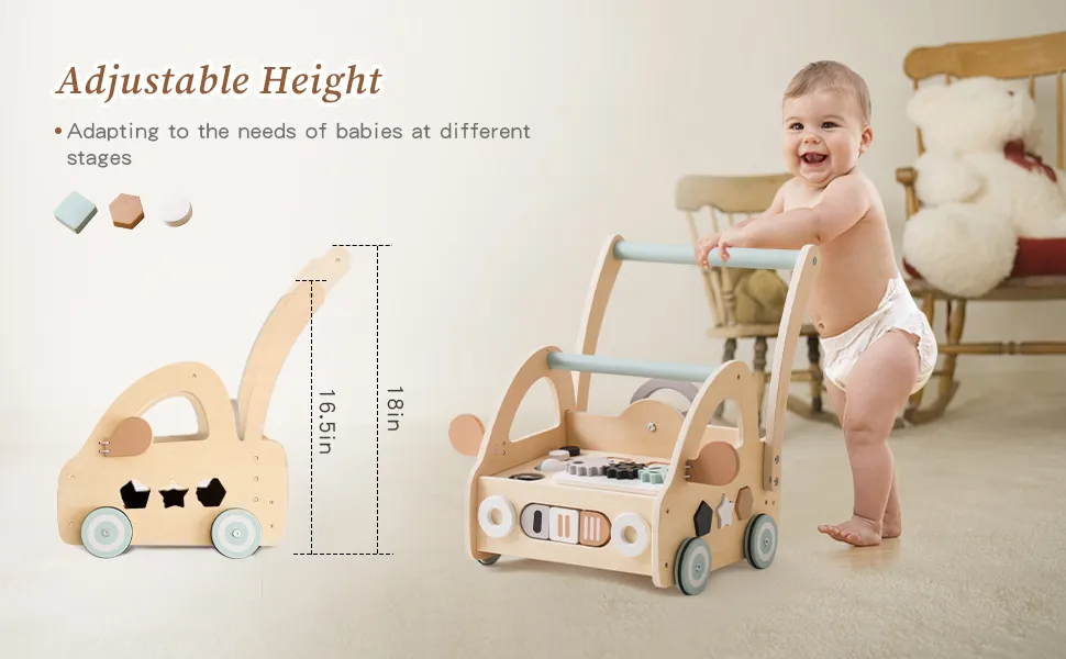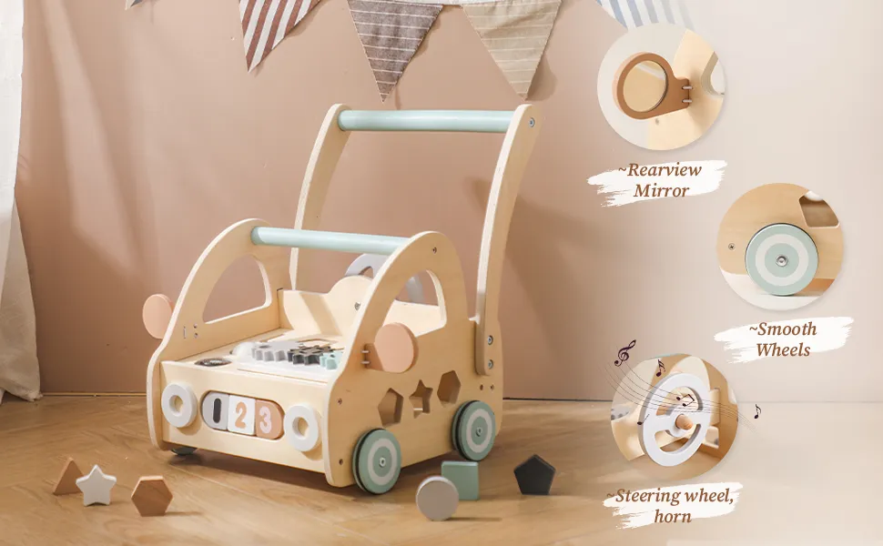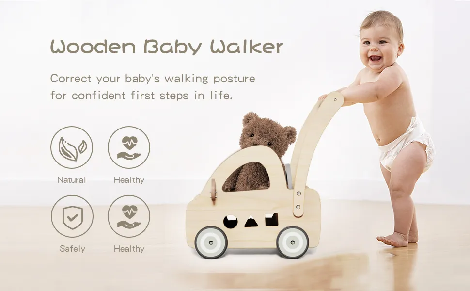 F1271 รถเข็นหัดเดินสำหรับเด็กทารกของเล่นเดินได้เด็กทำจากไม้วอล์กเกอร์สำหรับช่วยทำกิจกรรมหัดหัดเด็กหญิงเด็กชายแบบมอนเตสซอรี่หัดเรียนรู้ด้วยของขวัญมีรูปร่างดีรถสำหรับเด็กทารก6-12เดือน
