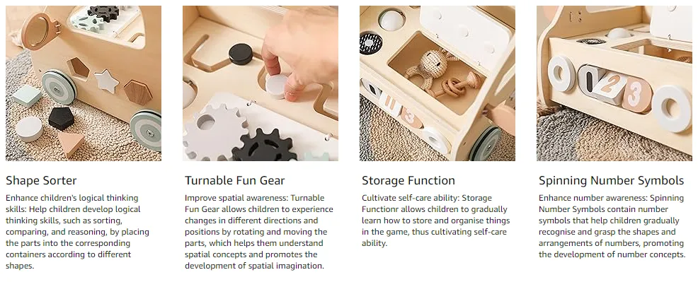 • 😋ความสนุกมัลติฟังก์ชั่น: ของเล่นเดินได้สำหรับเด็กทารกนี้มีศูนย์กิจกรรมมากมายรวมถึงตัวเรียงลำดับรูปร่างอุปกรณ์สนุกที่หมุนได้ฟังก์ชั่นการจัดเก็บพวงมาลัยสัญลักษณ์ตัวเลขการปั่นลูกกลมพัฒนาทักษะยนต์ & กระตุ้นความคิดสร้างสรรค์และเหมาะสำหรับเด็กทารกในระยะต่างๆของการพัฒนาของเล่นกิจกรรมการศึกษา