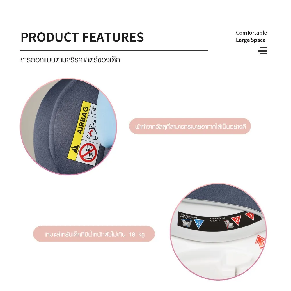 - ซัพพอร์ทหนานุ่ม ทั้งช่วงลำตัวและศีรษะ กันกระแทกอย่างดี ปลอดภัยมากยิ่งขึ้น