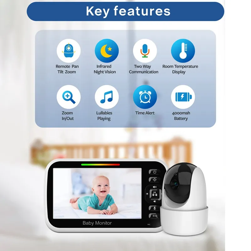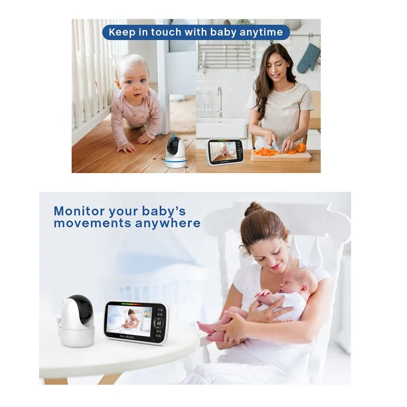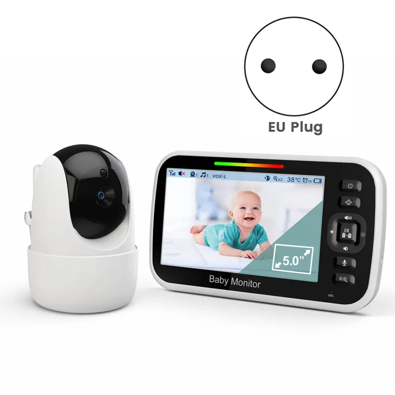 5 Inch PTZ Video Baby Monitor with Digital Surveillance Camera Auto Night Vision Two Way Intercom Babysitter EU Plug