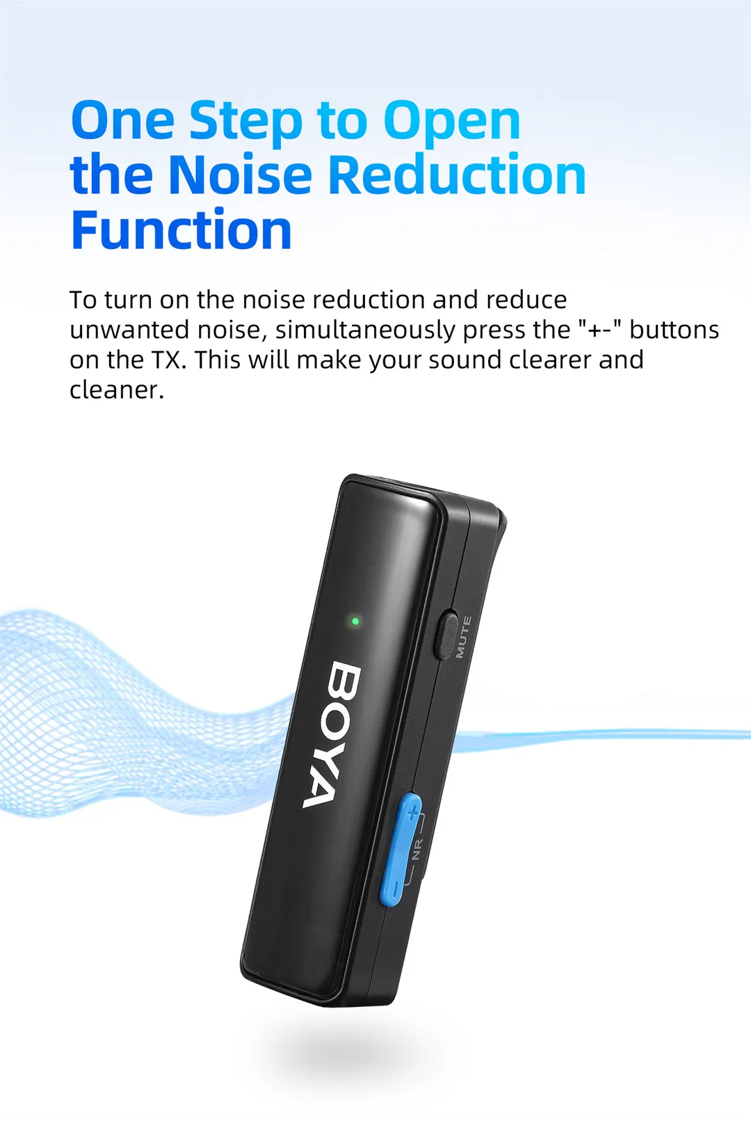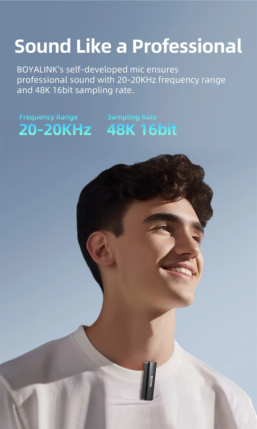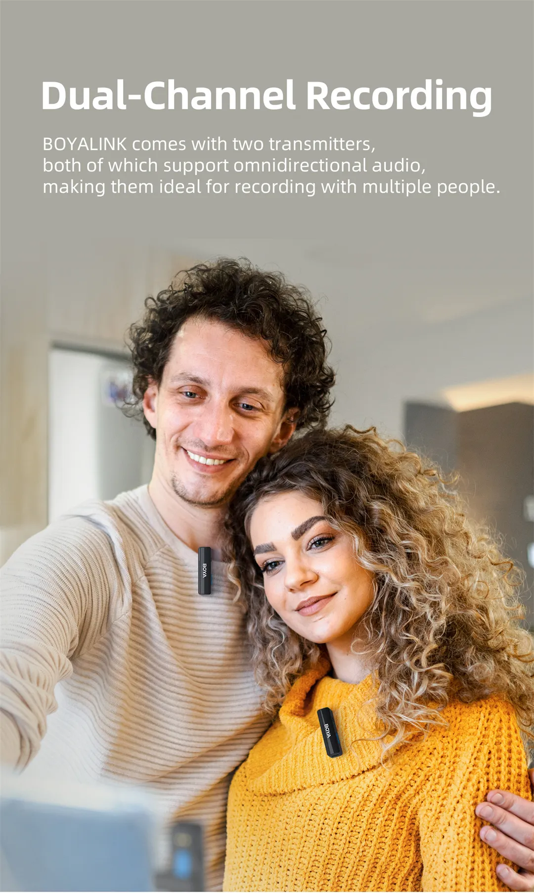 Boyalink เป็นระบบโทรศัพท์ไร้สายขนาด2.4กิกะเฮิร์ตซ์ขนาดกะทัดรัดและพกพาได้เข้ากันได้กับกล้องสมาร์ทโฟนแท็บเล็ตและอีกมากมายคอมพิวเตอร์มันมาพร้อมกับการจับคู่อัตโนมัติและการลดเสียงรบกวนที่สามารถเลือกได้ให้เสียงคุณภาพการออกอากาศที่ง่ายต่อการใช้งาน boyalink เหมาะสำหรับการสร้างเนื้อหา, การสตรีมสด, การบล็อก, การสื่อสารมวลชนบนมือถือและอื่นๆอีกมากมาย