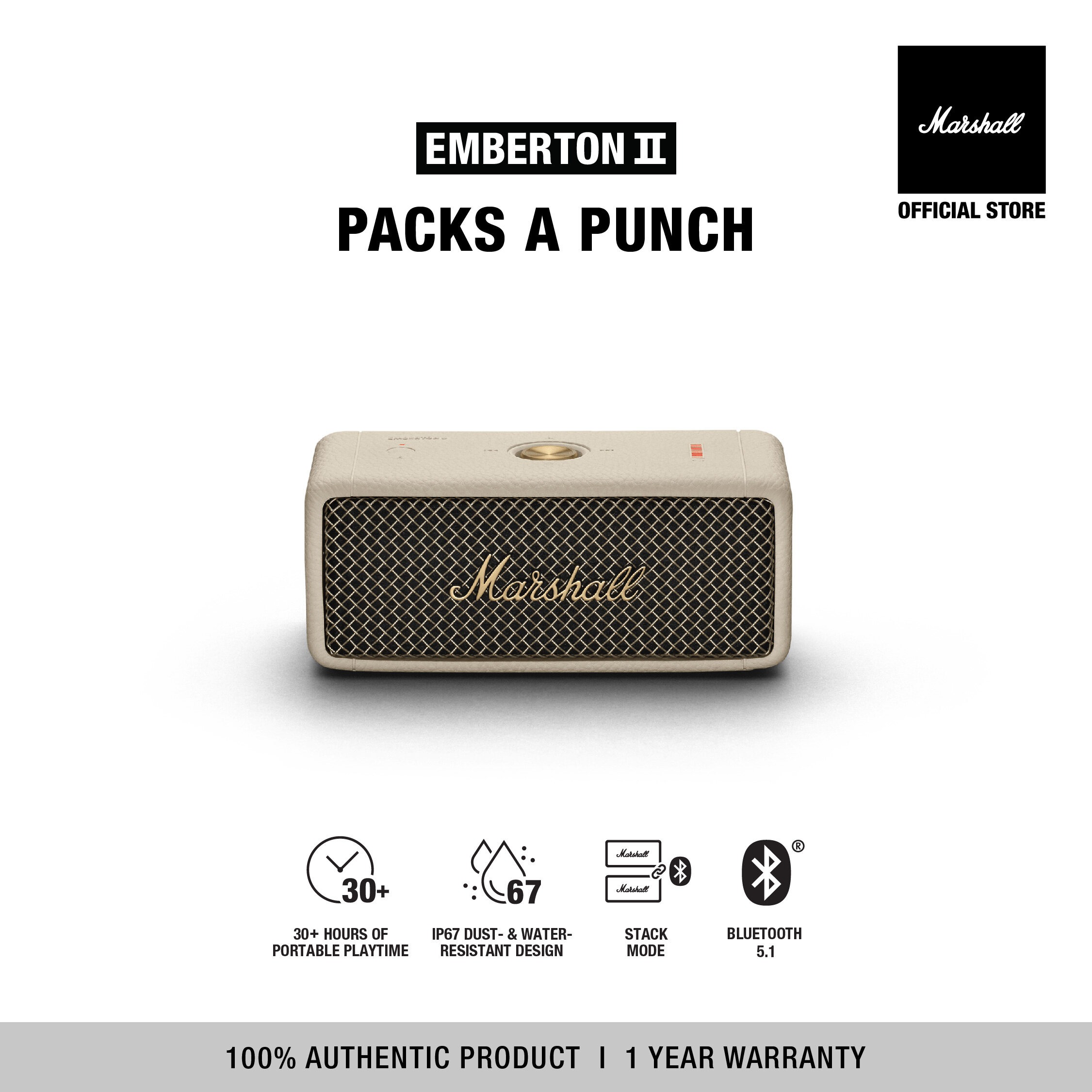 F1327 MARSHALL EMBERTON II CREAM – รับประกัน 1 ปี + ส่งฟรีทั่วไทย (ลำโพงบลูทูธ, ลำโพงพกพา, ลำโพง marshall, ลำโพง bluetooth)