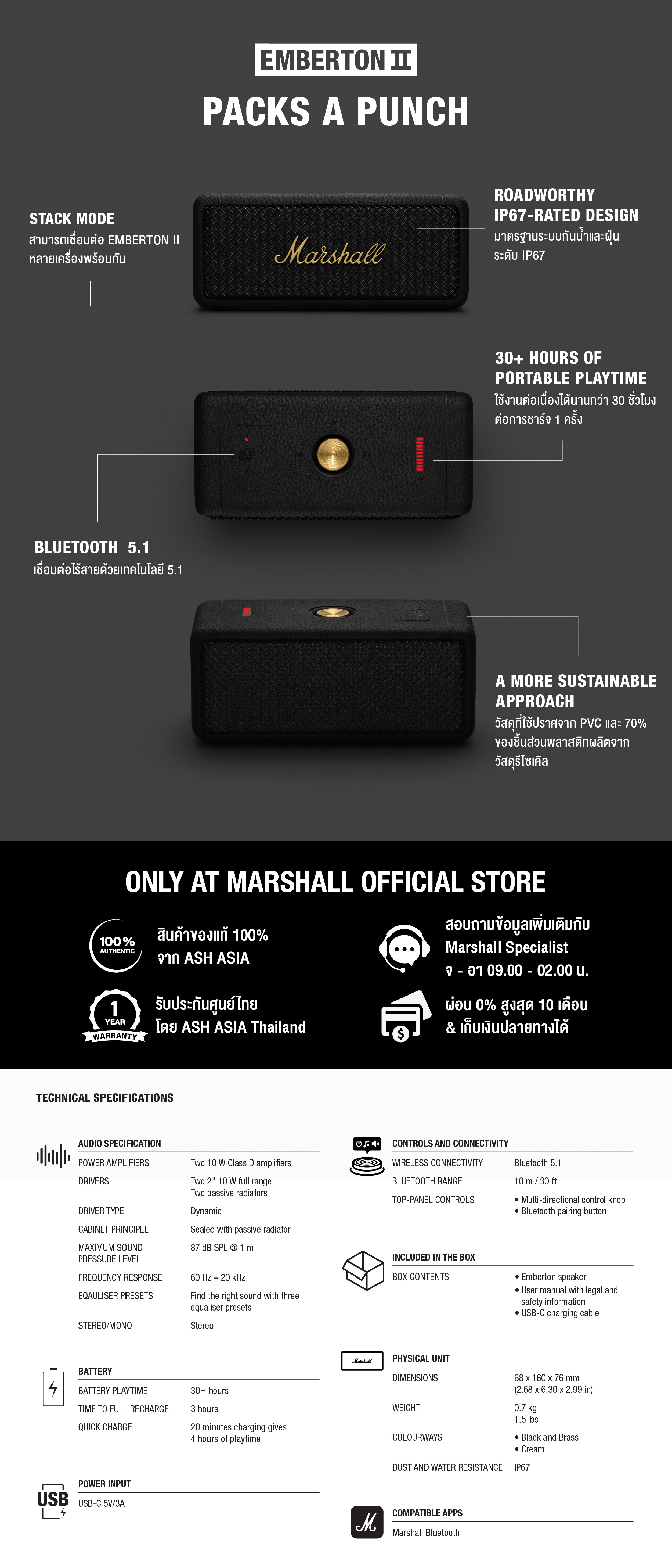 ✅ มั่นใจช้อป Marshall การันตีของแท้ 100% ได้ที่นี่ (โปรดสังเกตสติกเกอร์ Ash Asia บนกล่องสินค้า ที่เป็นตัวการันตีของแท้)