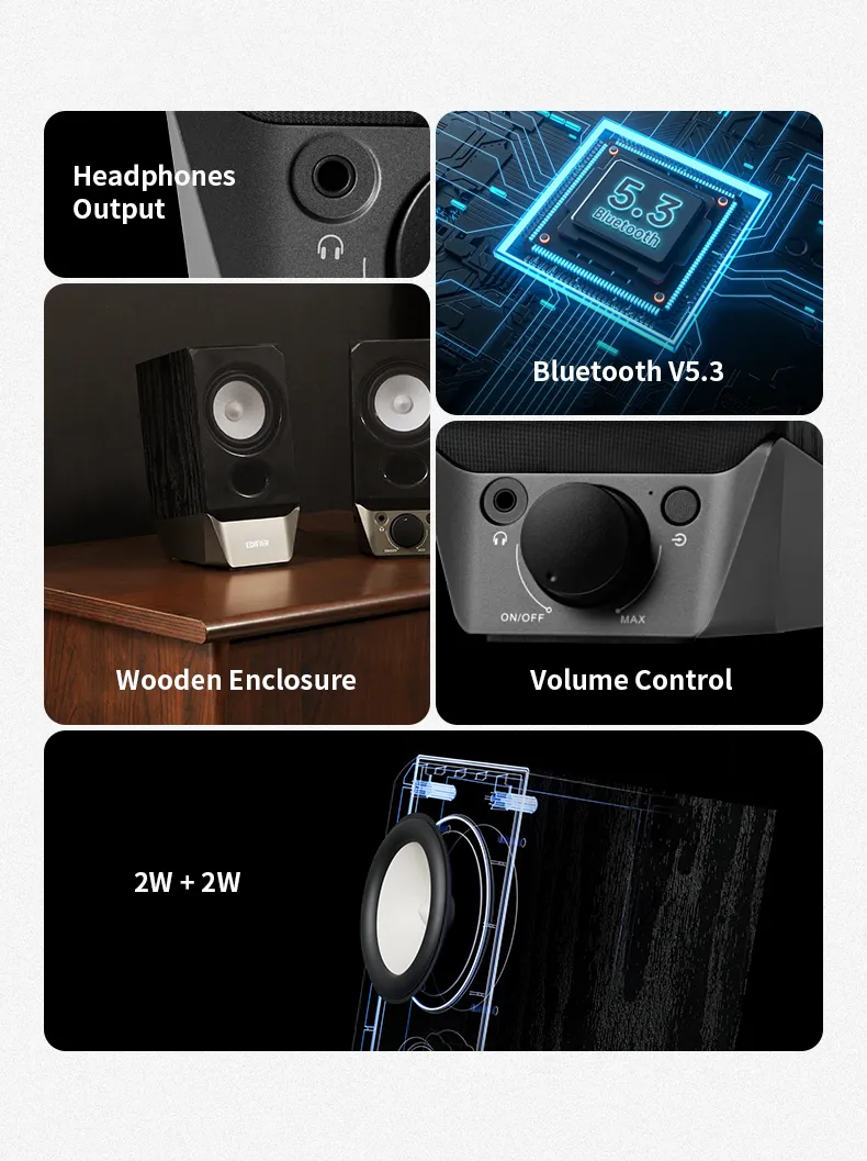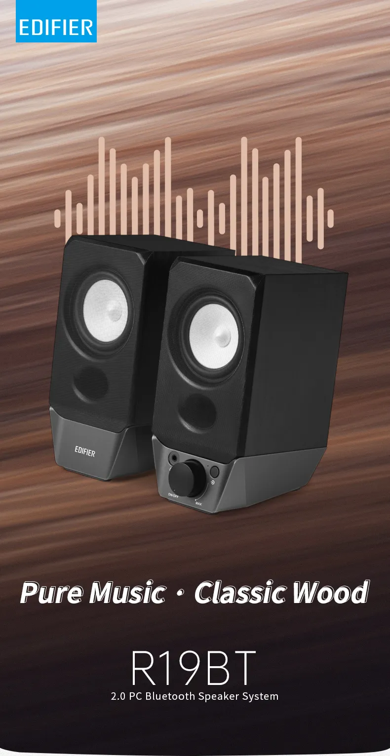 Edifier R19BT ลําโพงบลูทูธ USB Bluetooth Speaker เชื่อมต่อบลูทูธ 5.3 (2 ชิ้น)