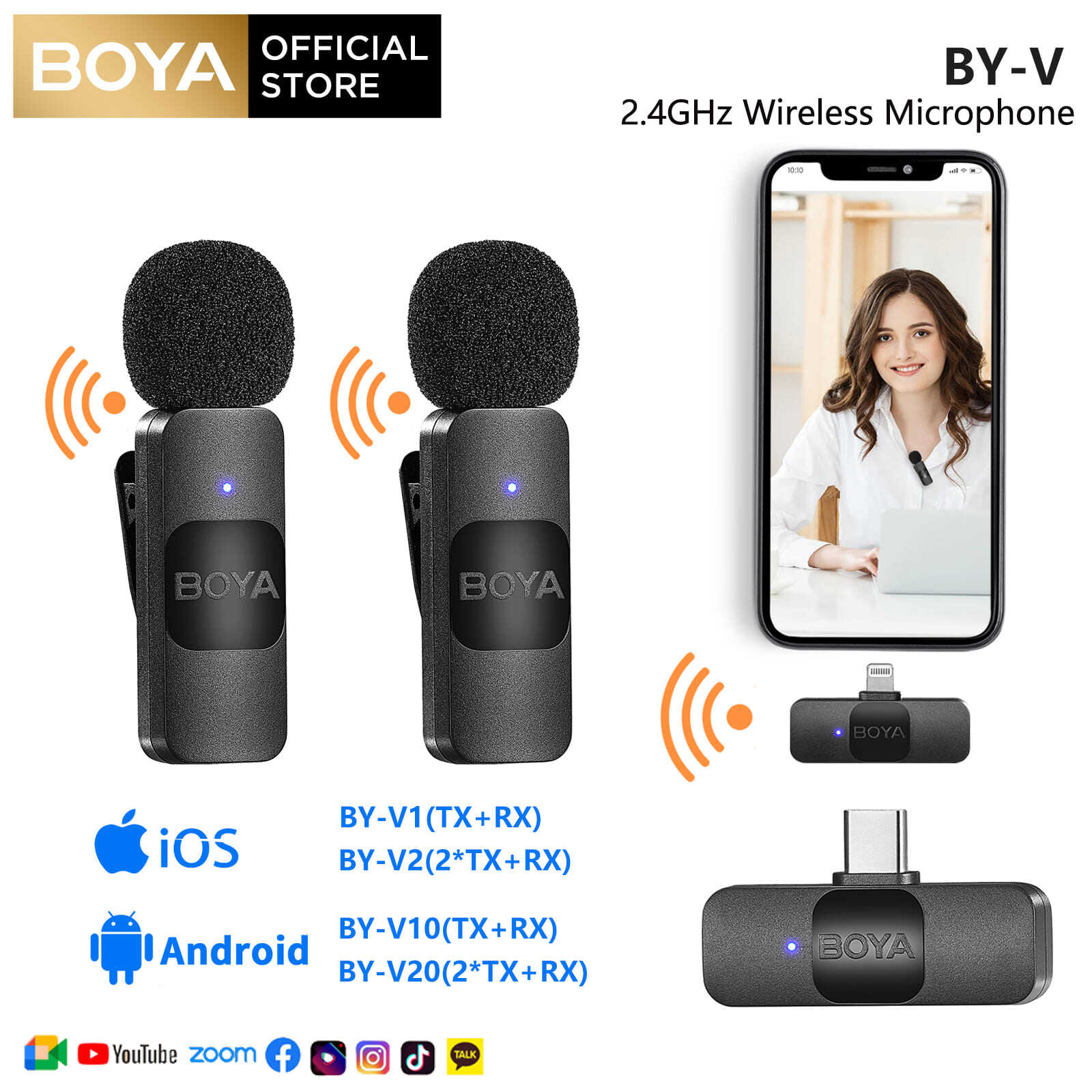 F1330 BY-V1 BOYA ชุด BY-V V2ไร้สายขนาดเล็กไมโครโฟนสายคล้องคอสำหรับไอโฟนไอแพดแอนดรอยด์หม้อหล่อเย็นรอบทิศทางบันทึกไมโครโฟนติดปกเสื้อสำหรับการสัมภาษณ์วิดีโอถ่ายทอดสด Vlog YouTube