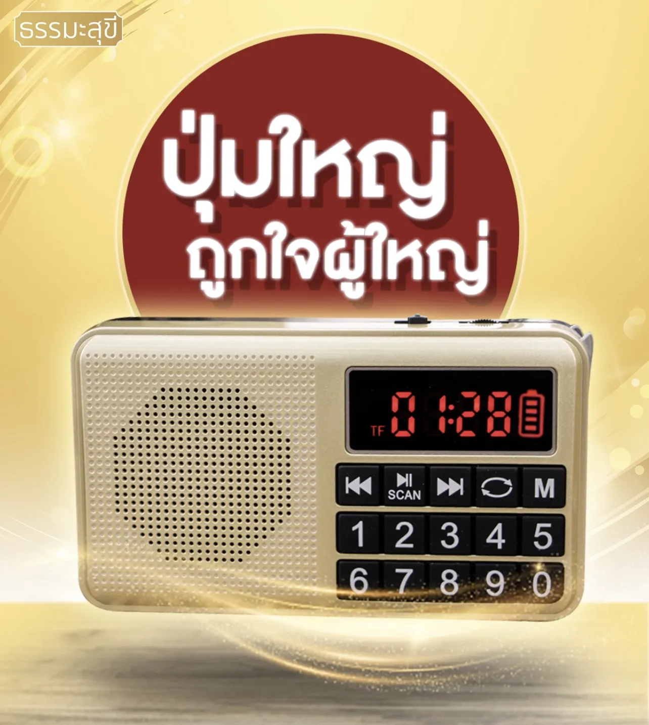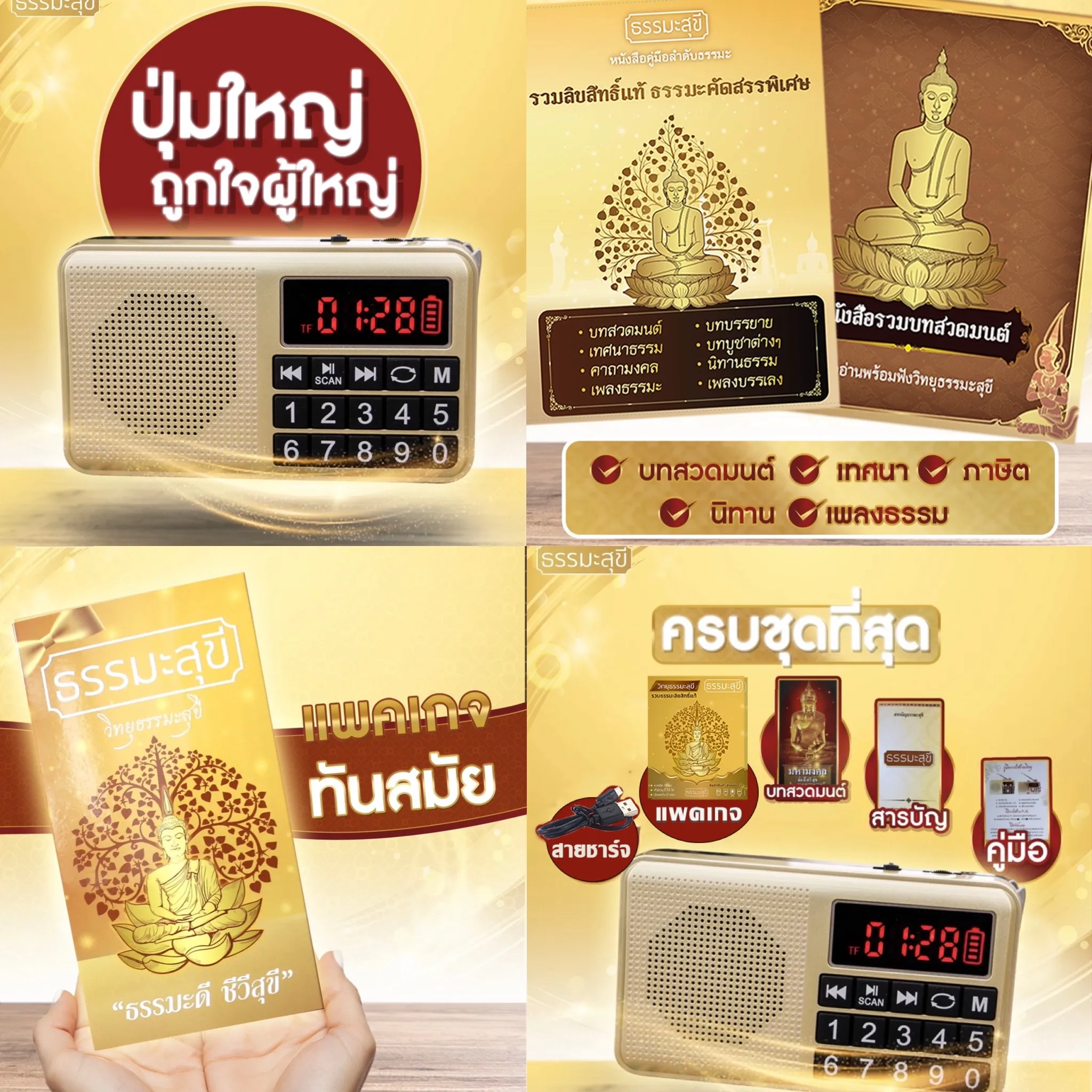 วิทยุธรรมะสุขี รุ่นปุ่มใหญ่ที่ดีกว่าที่อื่น รวมธรรมะครบครันในเครื่องเดียว ใช้ง่าย ยอดขายอันดับ 1 เสียงดี แบตอึดกว่า ลิขสิทธิ์แท้ 100% เสียงชัดมีคุณภาพ