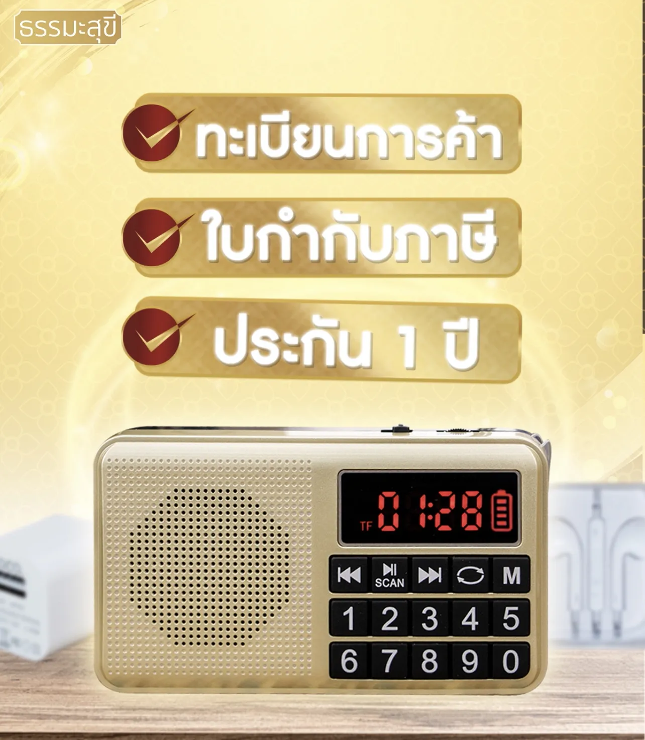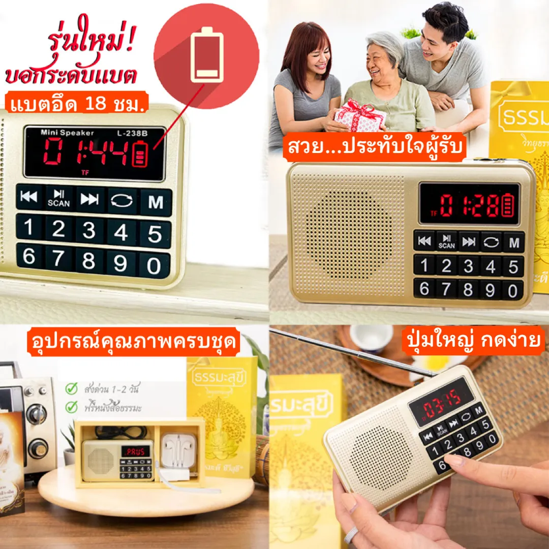 F1332 วิทยุธรรมะสุขีปุ่มใหญ่ ลิขสิทธิ์แท้ ประกัน 1 ปี มี มอก. แบตนาน 18 ชั่วโมง บทสวดมนต์ เทศนา คาถาม นิทาน เพลงบำบัด มีใบกำกับภาษี