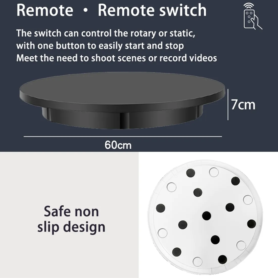 F1363 PULUZ เครื่องเล่นแผ่นเสียงที่วางแสดงหมุนได้ไฟฟ้า60ซม. บรรจุ: 100กก. ปลั๊กอินปลั๊กไฟปลั๊กไฟ