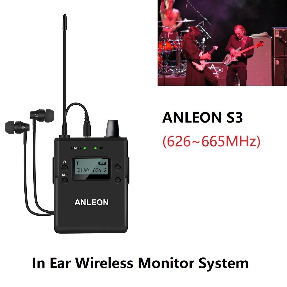 ระบบ IEM S3ขั้นสูงของ anleon มีคุณสมบัติการตรวจสอบในหูแบบมืออาชีพอย่างเต็มรูปแบบระบบจอภาพสเตอริโอมีการควบคุมมิกซ์ส่วนบุคคลที่หลากหลายของ S3ซึ่งจะช่วยให้ปริมาณและการควบคุมผสมของสองสัญญาณอิสระบนเวทีผ่านการควบคุมบน S3สเตอริโอร่างกายแพ็ครับ ในขณะที่ใช้ระบบ S3ที่สมบูรณ์สูงสุด8ระบบอาจจะใช้งานพร้อมกันตัวรับสัญญาณสเตอริโอ S3จำนวนเท่าใดก็ได้สามารถทำงานบนความถี่เดียวกันกับเครื่องส่งสเตอริโอ S3เดียว เครื่องส่งสัญญาณสเตอริโอ S3มีขั้วต่ออินพุตคอมโบ xlr/¼ ”สองตัวซึ่งผู้ใช้สามารถเชื่อมต่ออินพุตระดับสาย (เช่นจากคอนโซลผสม) เครื่องส่งสัญญาณ S3ยังมีเอาต์พุตหูฟังที่ช่วยให้คุณสามารถตรวจสอบสัญญาณอินพุตของเครื่องส่งสัญญาณได้โดยตรงคุณสมบัติของ