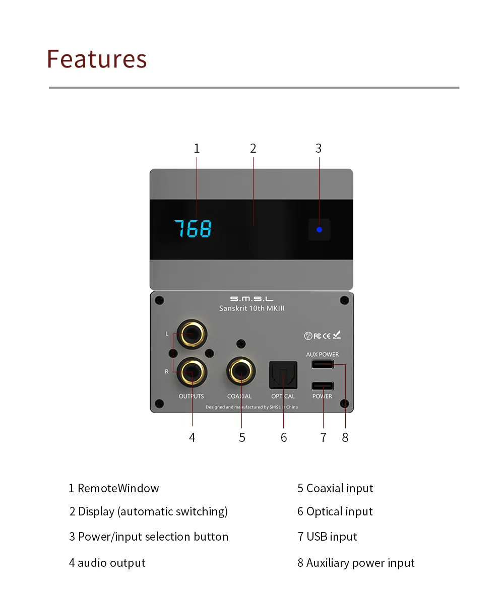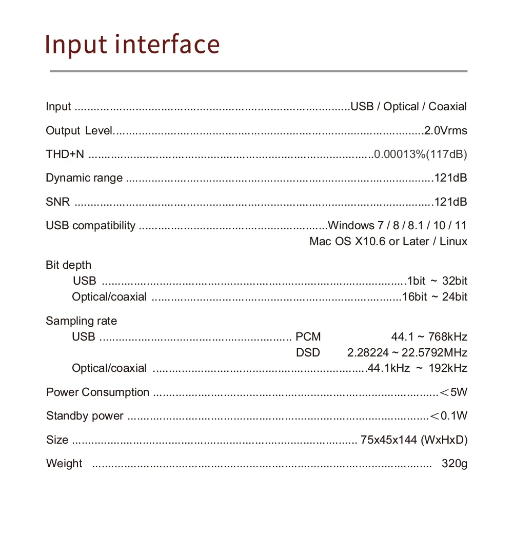 - อินพุต: USB Type-B,Optical (SPDIF),Coaxial