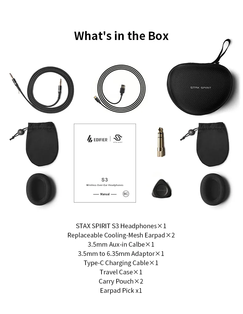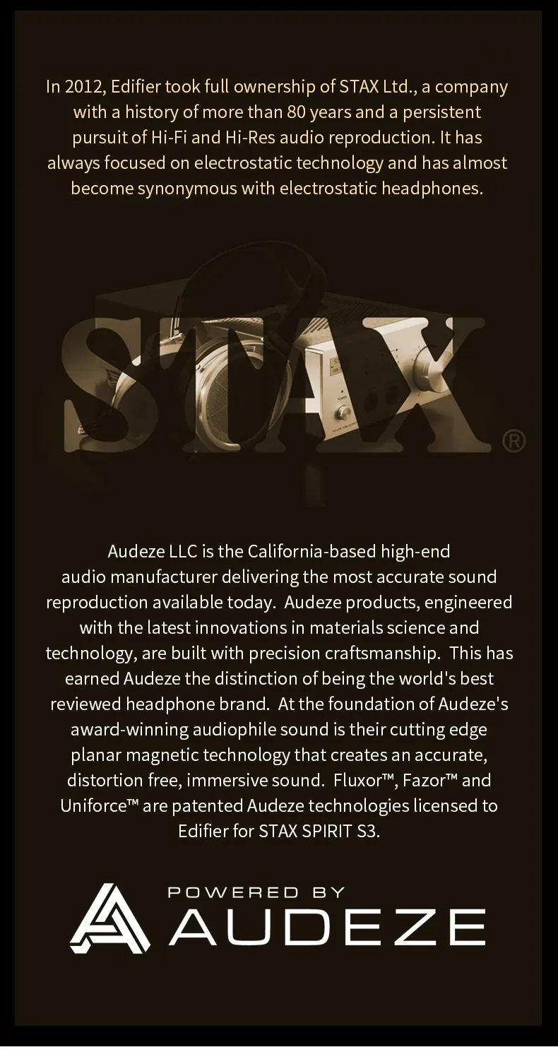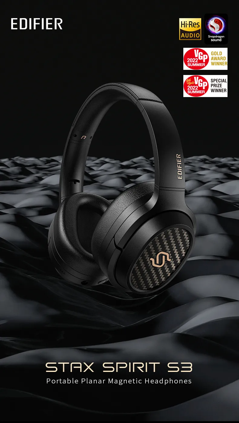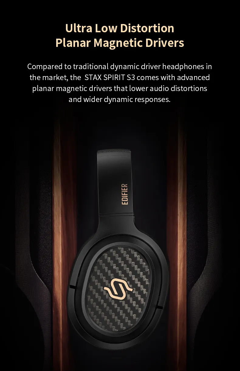 Edifier Stax Spirit S3 หูฟังแบบครอบหูตัดเสียงรบกวน Wireless Over Ear Headphone Hi-Res รองรับ Qualcomm® aptX™Adaptive Type-C เชื่อมต่อด้วย Bluetooth V5.2 with FULL-SIZE ไดร์เวอร์ PLANA