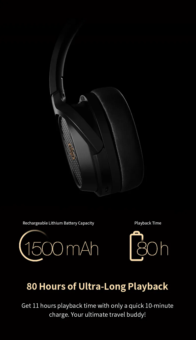 • Lasting Battery Life:Around 80 hrs music playtime giving you long time enjoyment