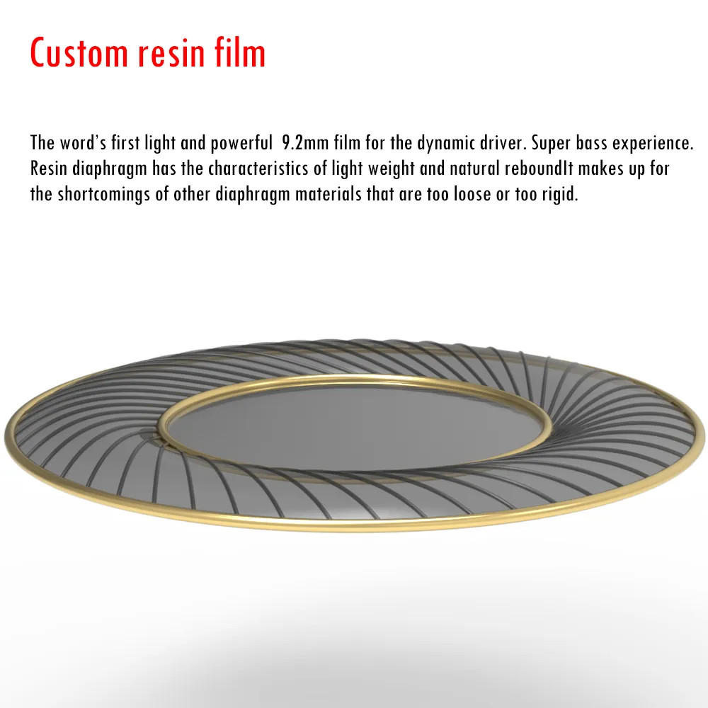 หูฟัง 3 ไดรเวอร์ 2BA+1DD ที่ใช้ Diaphragm 9.2 mm แบบฟิลม์เรซินที่ปรับแต่งมาเป็นพิเศษ