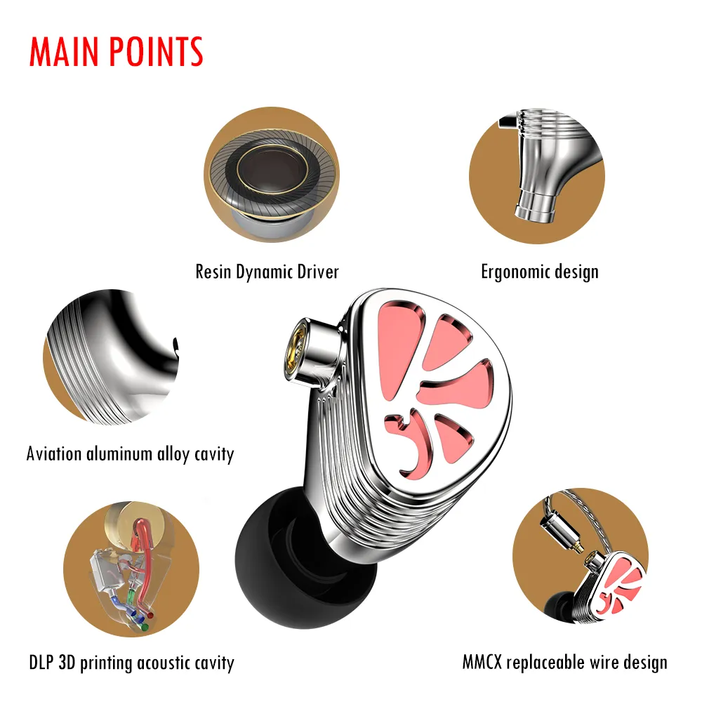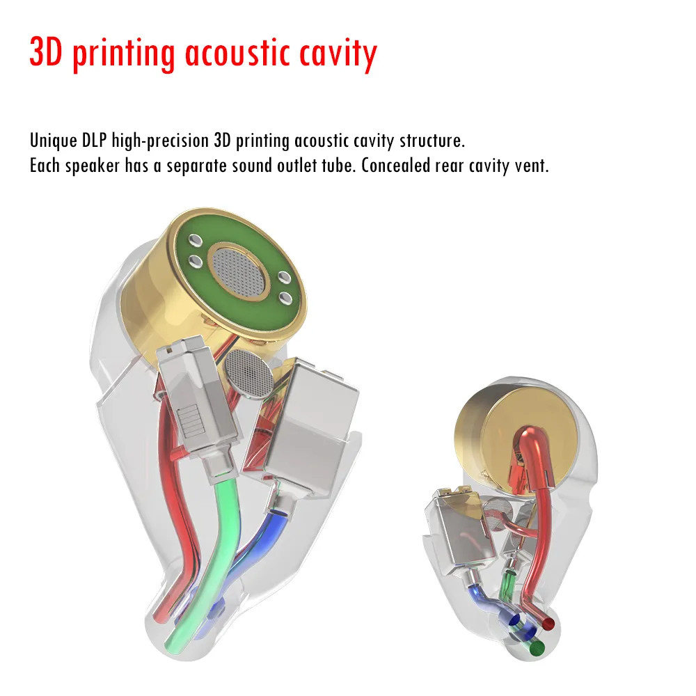 ผลิตด้วยการพิมพ์ DLP 3 มิติที่มีความแม่นยำสูง ซึ่งในไดรเวอร์แต่ละตัวมีท่อนำเสียง