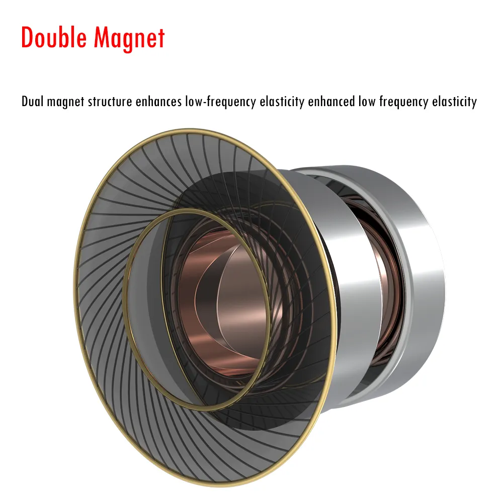 ใช้โครงสร้างแม่เหล็กคู่ ช่วยเพิ่มความยืดหยุ่นเสียงย่านความถี่ต่ำ