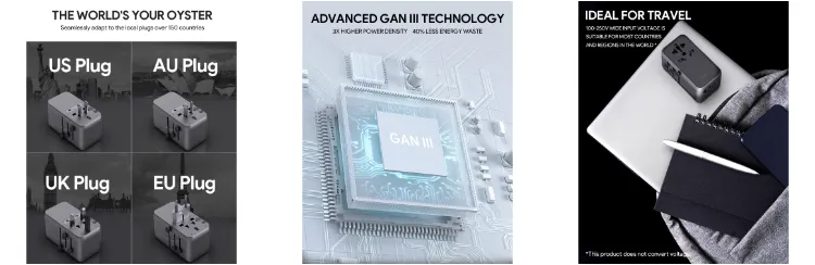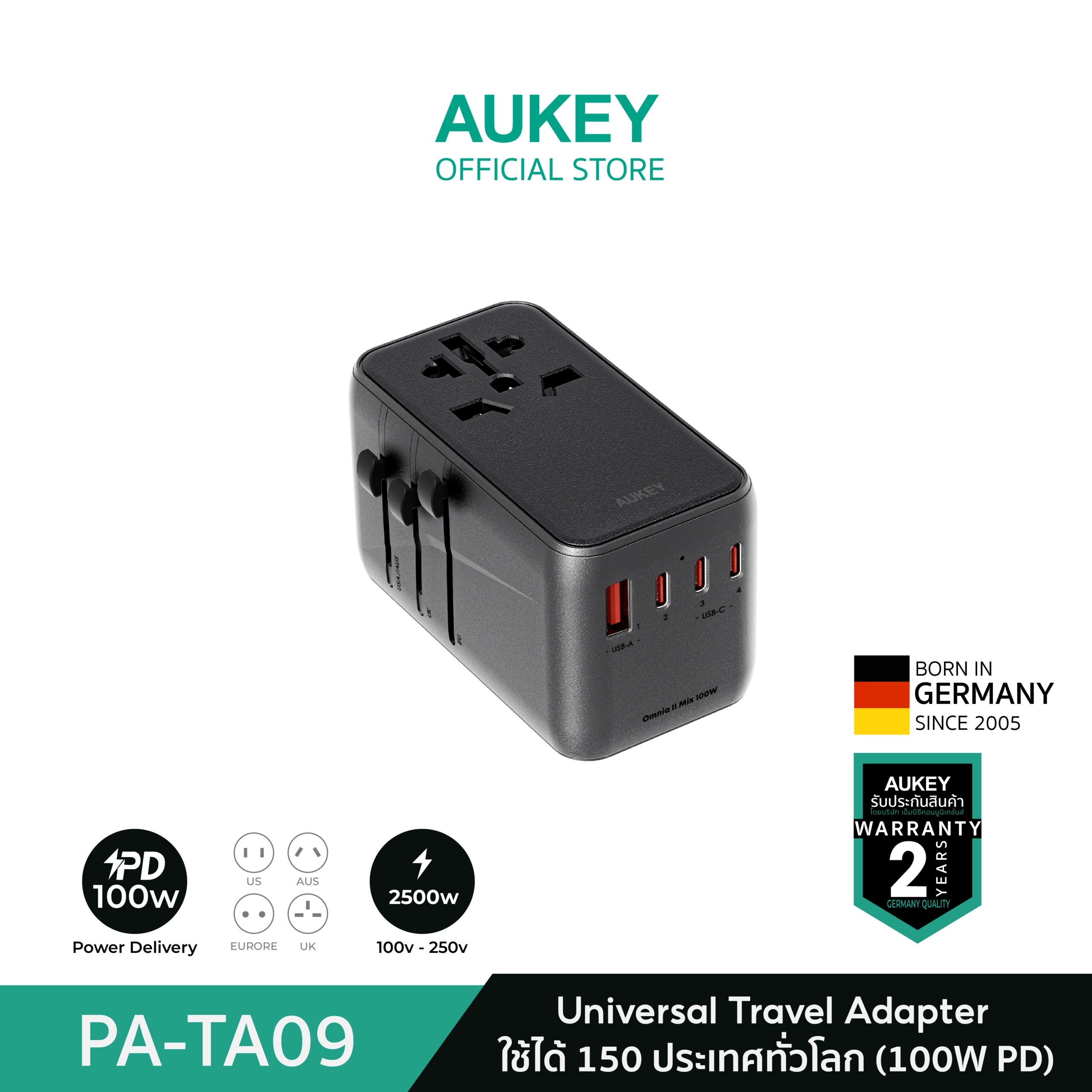 Aukey PA-TA09 100W หัวแปลงปลั๊กไฟ 100W Universal Travel Adapter มาพร้อม ช่อง USB-C และ USB-A รุ่น PA-TA09